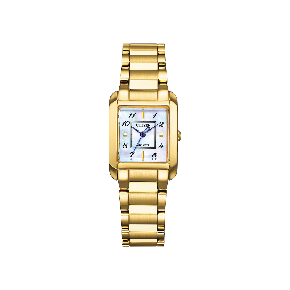 Dit Citizen dameshorloge valt op door zijn bijzondere vierkante goudkleurige kast, die een moderne draai geeft aan een klassiek ontwerp. De parelmoeren rainbow-wijzerplaat zorgt voor een kleurrijk en speels effect dat telkens anders schittert bij verschillende lichtinval. De blauwe wijzers contrasteren prachtig met de wijzerplaat en voegen een extra vleugje elegantie toe. Met het innovatieve Eco-Drive systeem werkt het horloge op lichtenergie, waardoor het nooit een batterijwissel nodig heeft. Dit maakt het niet alleen een stijlvol, maar ook een praktisch en duurzaam accessoire, perfect voor de moderne vrouw die oog heeft voor detail en kwaliteit.