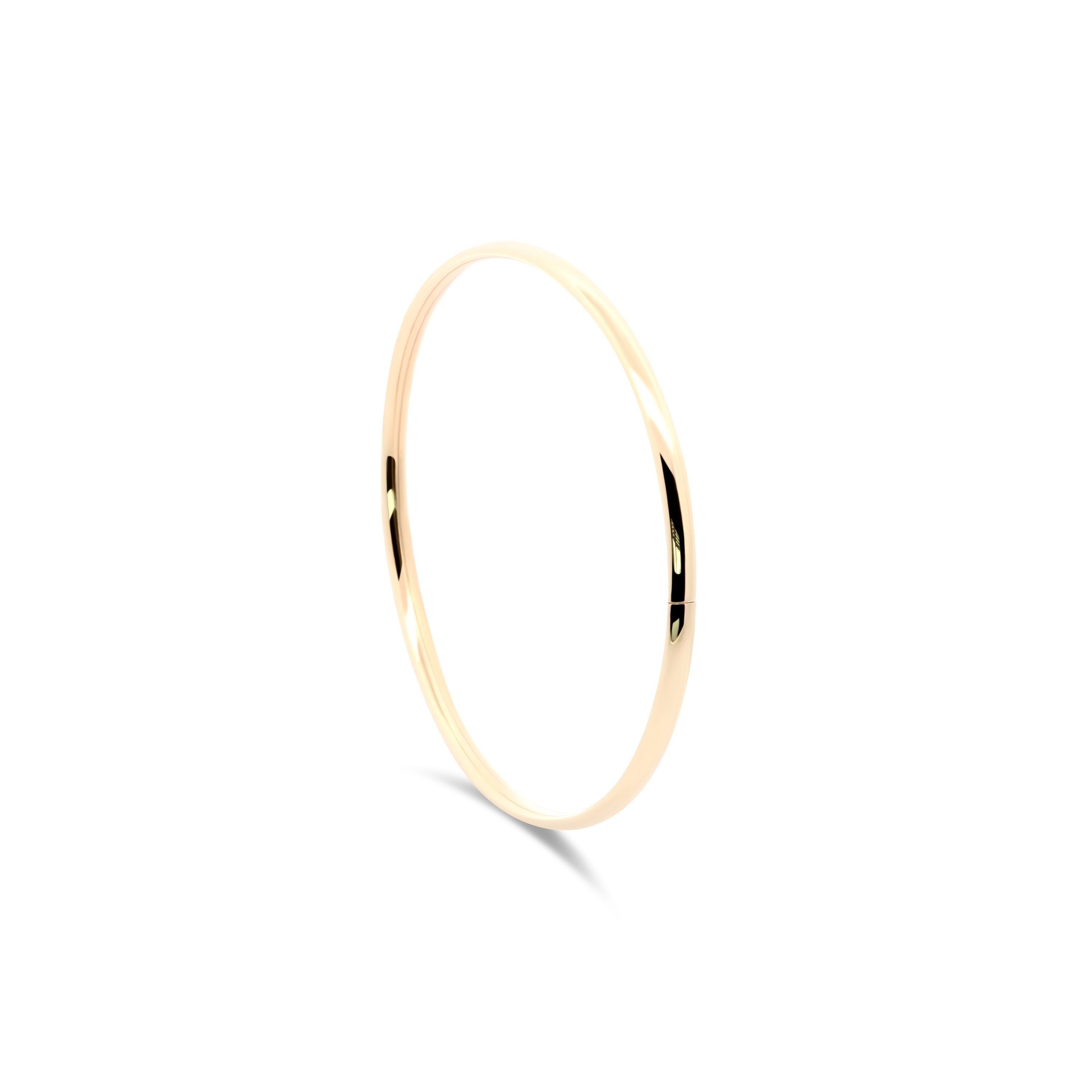 Deze smalle bangle-armband van 14 karaat geelgoud is perfect voor wie houdt van een minimalistische en verfijnde look. Het slanke, stijve ontwerp sluit elegant om de pols en is ideaal om solo te dragen of te combineren met andere armbanden voor een gelaagde stijl.