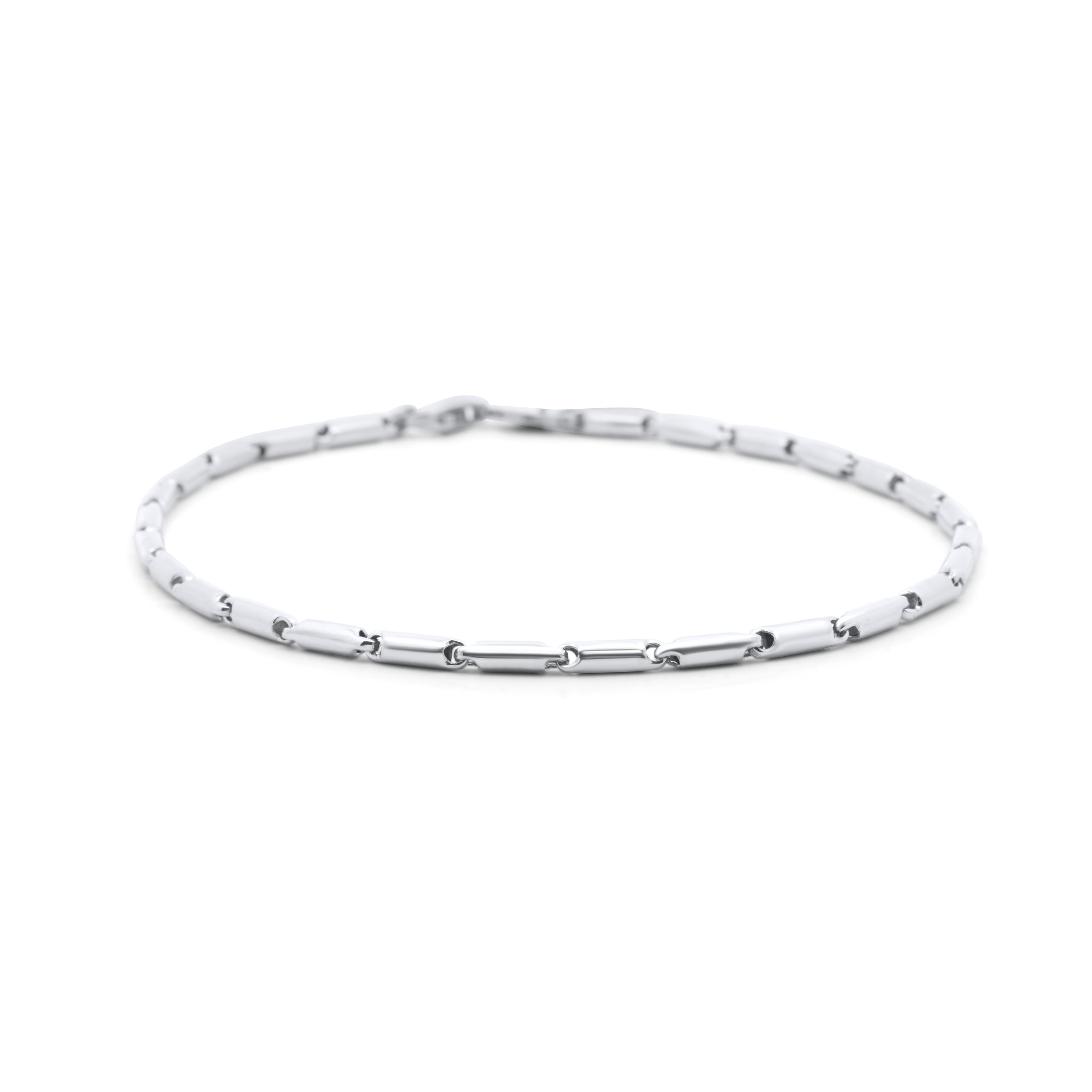 Deze witgouden armband valt op door zijn schakel vorm. Perfect voor iemand die houd van iets unieks. Vervaardig uit 14krt witgoud.
