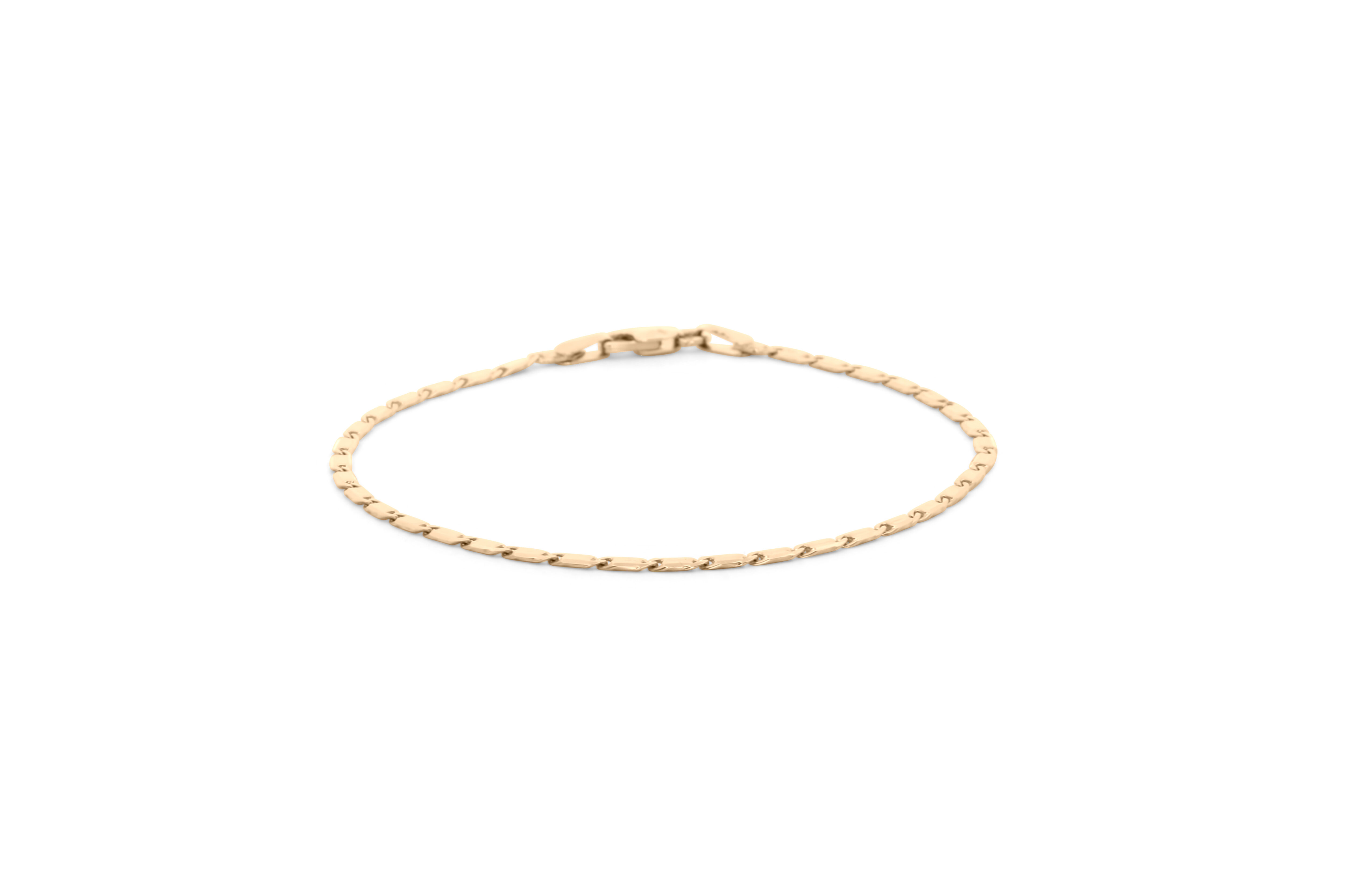 De 14 karaat geelgouden fantasie armband valt op door zijn bijzondere schakelingen die zorgen voor een opvallend en stijlvol effect. Dit tijdloze sieraad is perfect voor wie houdt van een subtiele maar onderscheidende look.