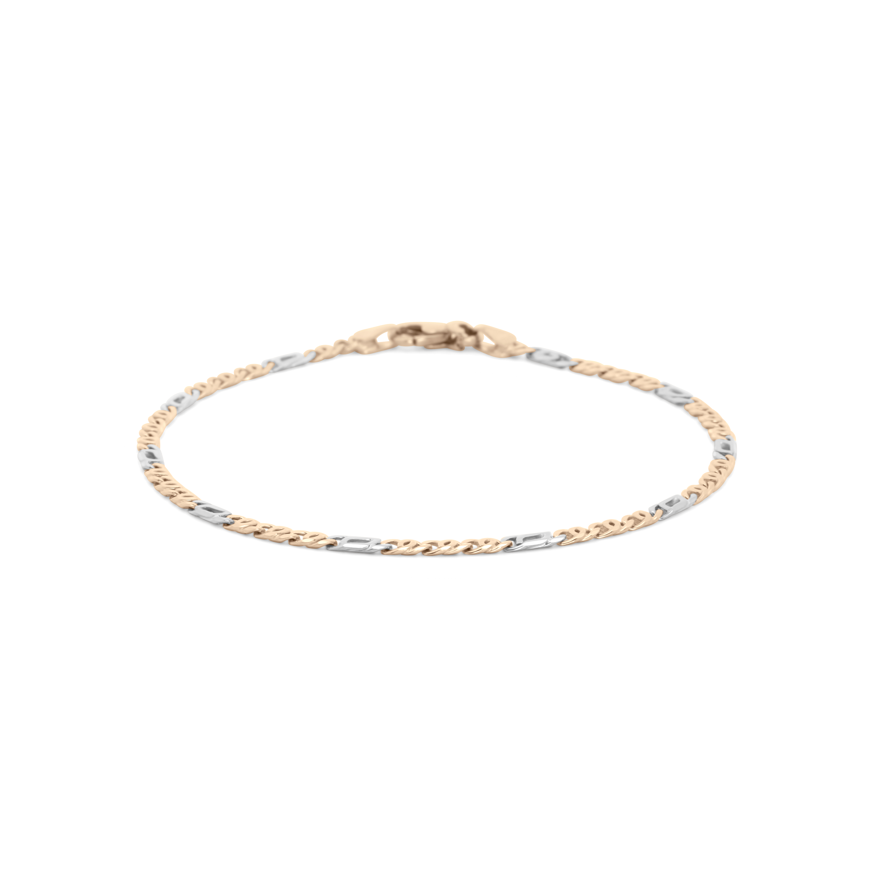 Deze fantasie armband is perfect te combineren bij zovel wit al geelgoud.