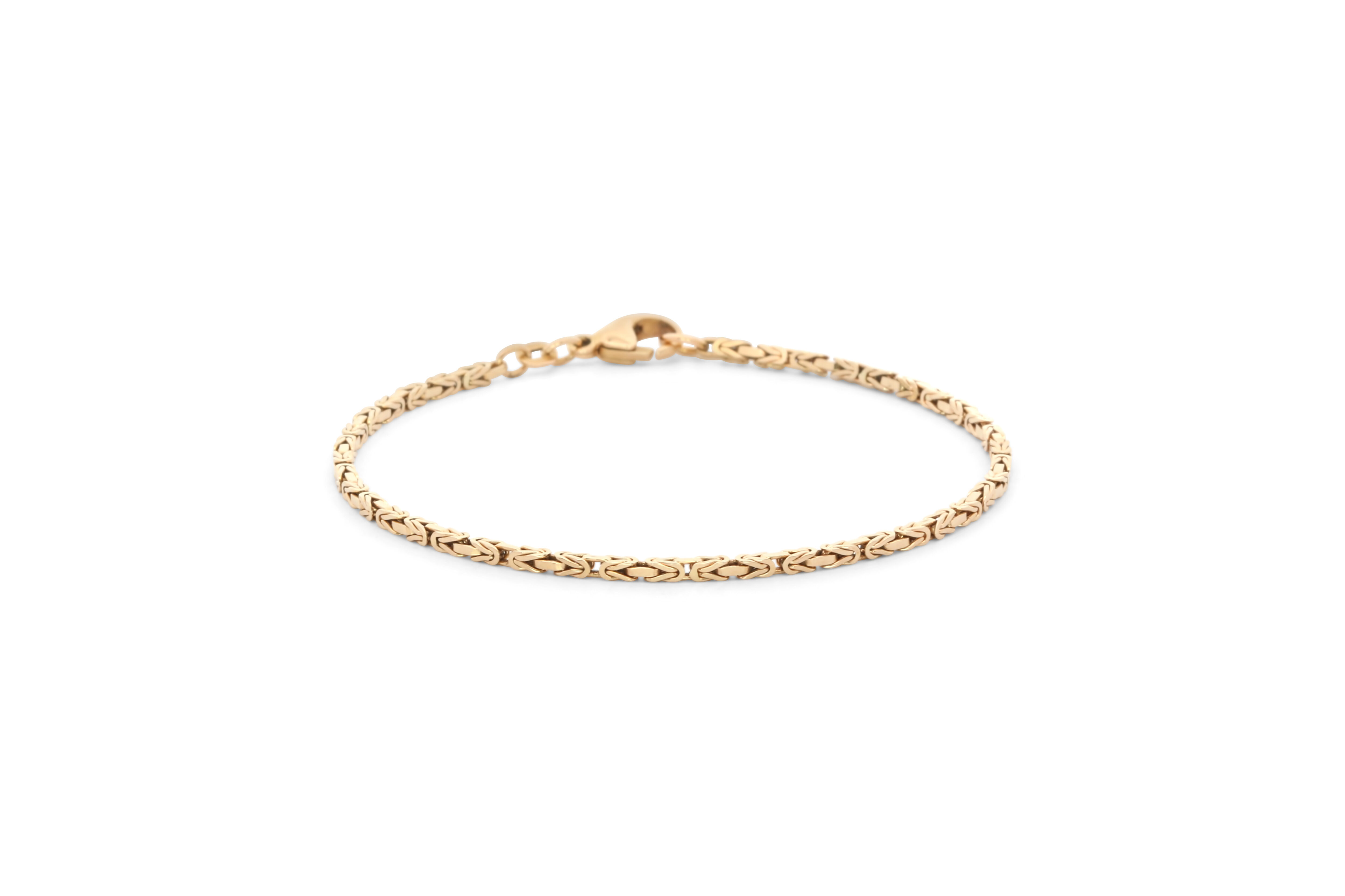 Deze elegante Koningsschakel armband van 14 karaat geel goud straalt luxe en vakmanschap uit. De koningsschakel – bekend om zijn verfijnde, gevlochten ontwerp – geeft deze armband een robuuste en tegelijkertijd sierlijke uitstraling.
