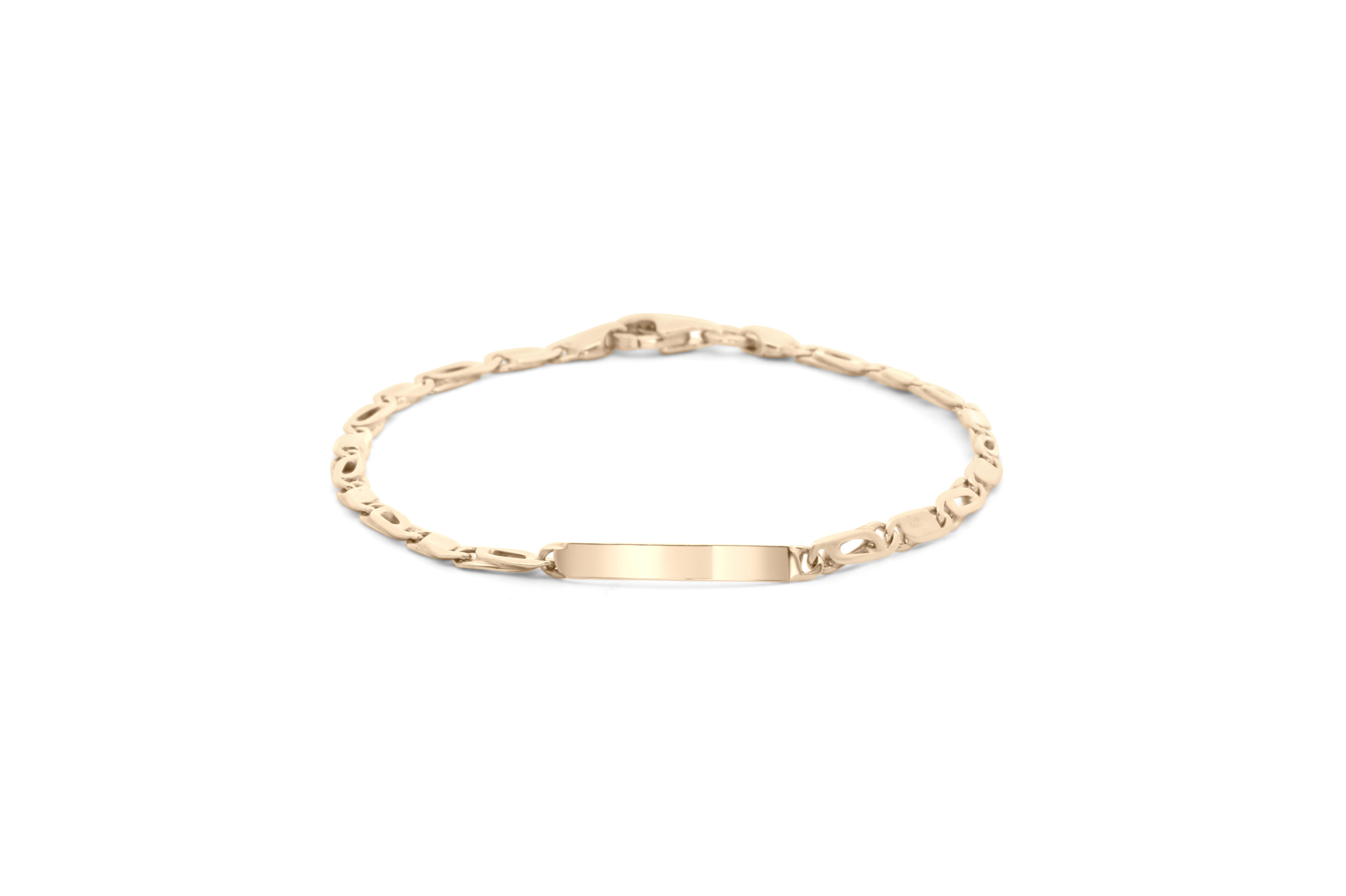 De plaat armband in 14 karaat geel goud is een veelzijdig sieraad dat zowel casual als chic gedragen kan worden.