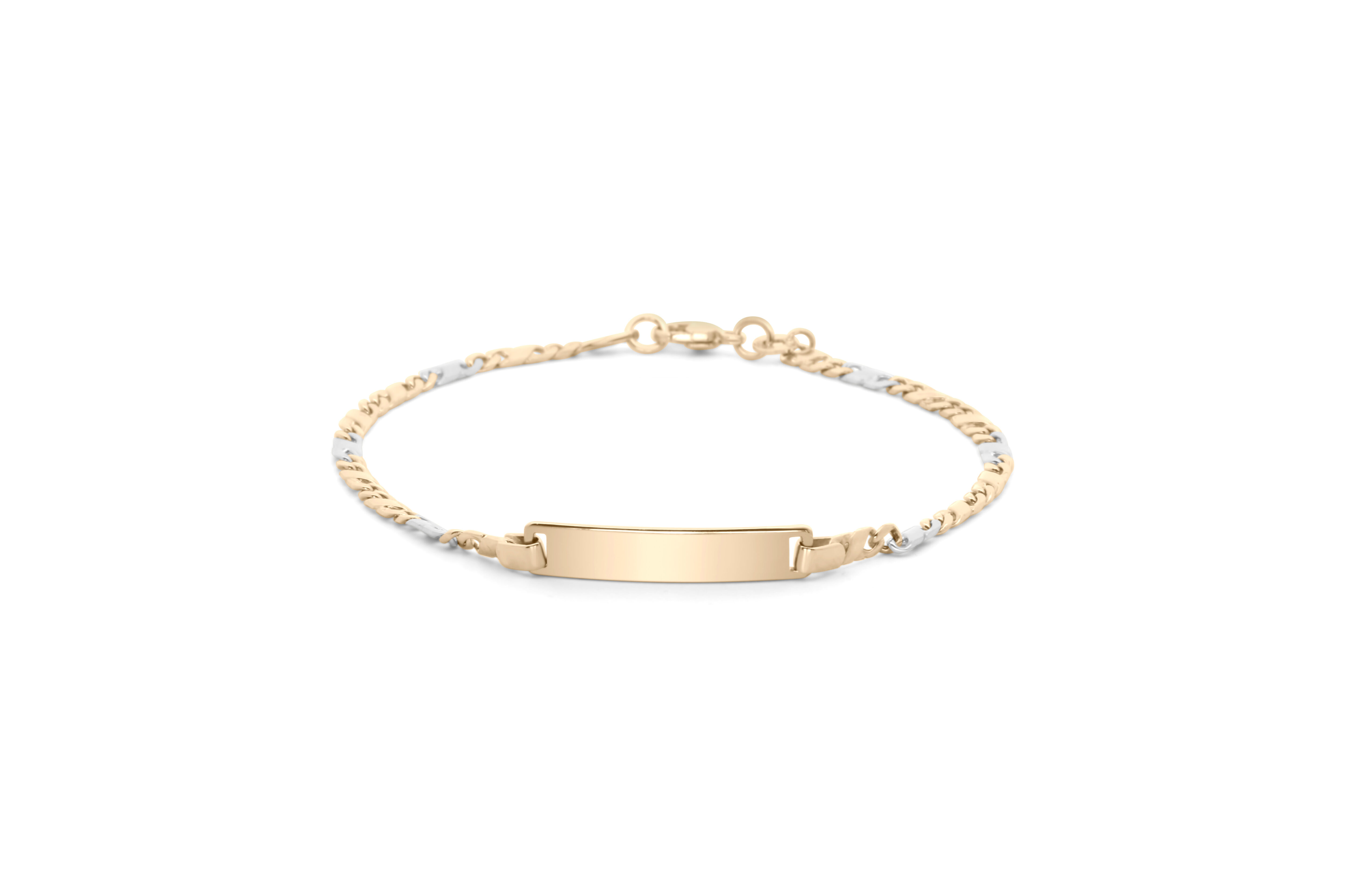 Deze 14 karaat wit- en geelgouden plaat armband is een sieraad dat perfect is voor iedereen die op zoek is naar iets extra persoonlijks. De gladde plaat biedt voldoende ruimte voor een persoonlijke gravure, waardoor de armband een unieke en speciale betekenis krijgt.
