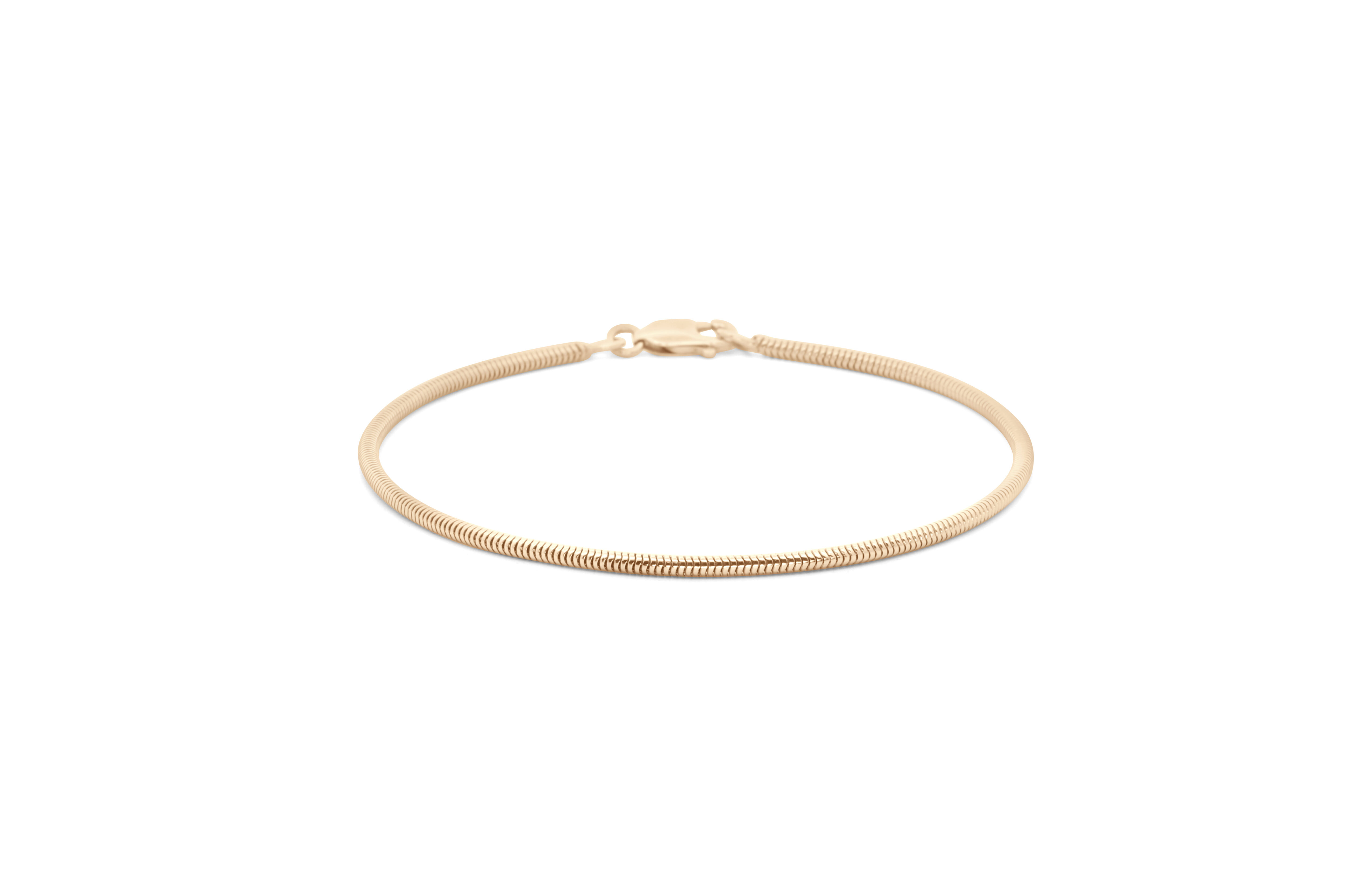 Deze 14 karaat geelgouden snake armband is een elegant sieraad met een luxueuze uitstraling. De snake schakel, ook wel slangenmotief genoemd, staat bekend om zijn vloeiende, ronde vorm die soepel om de pols valt en prachtig glanst bij iedere beweging.