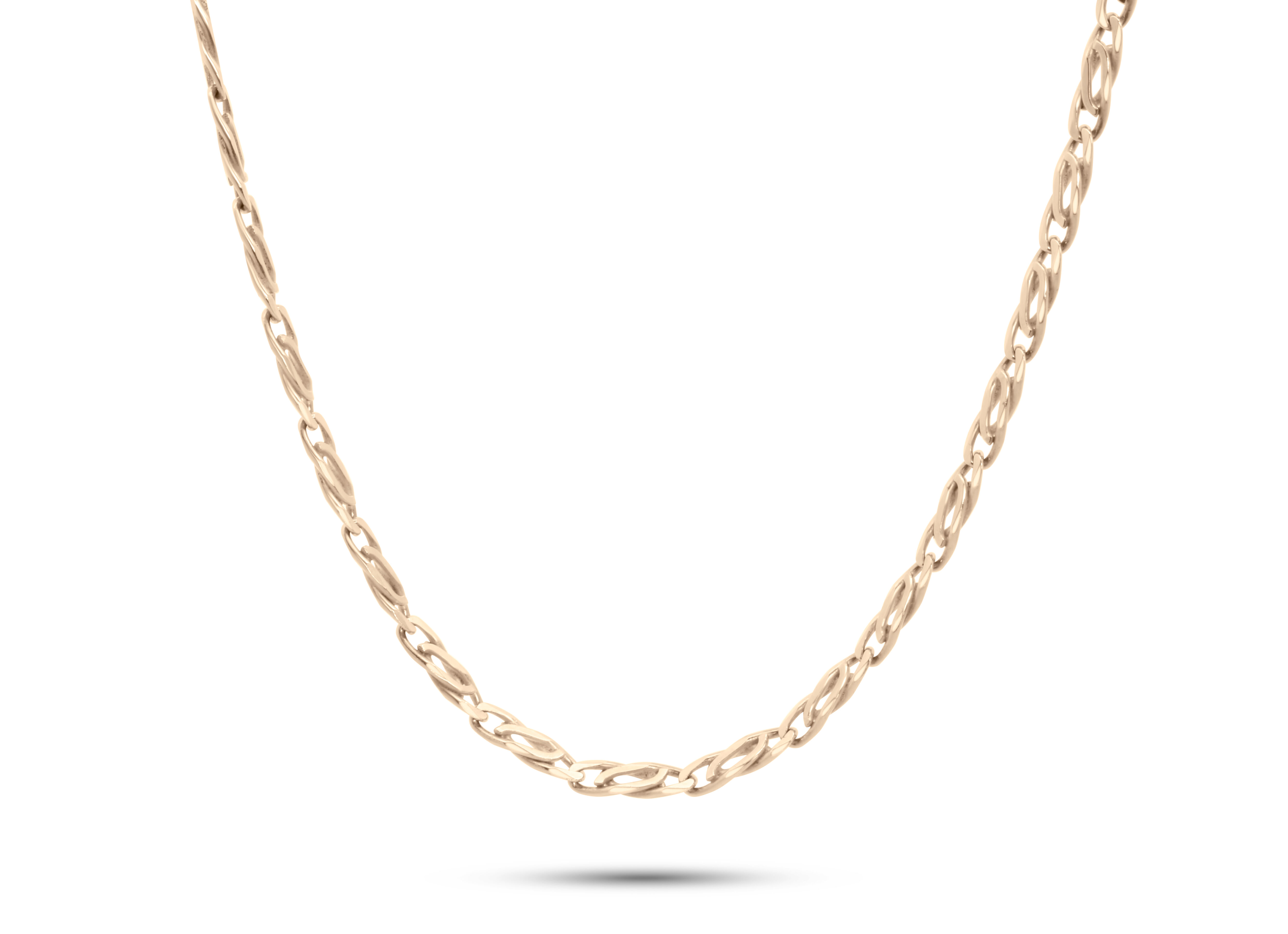 Deze geelgouden collier uit de Ed Nobel collectie is vervaardigd uit 14 karaat goud.