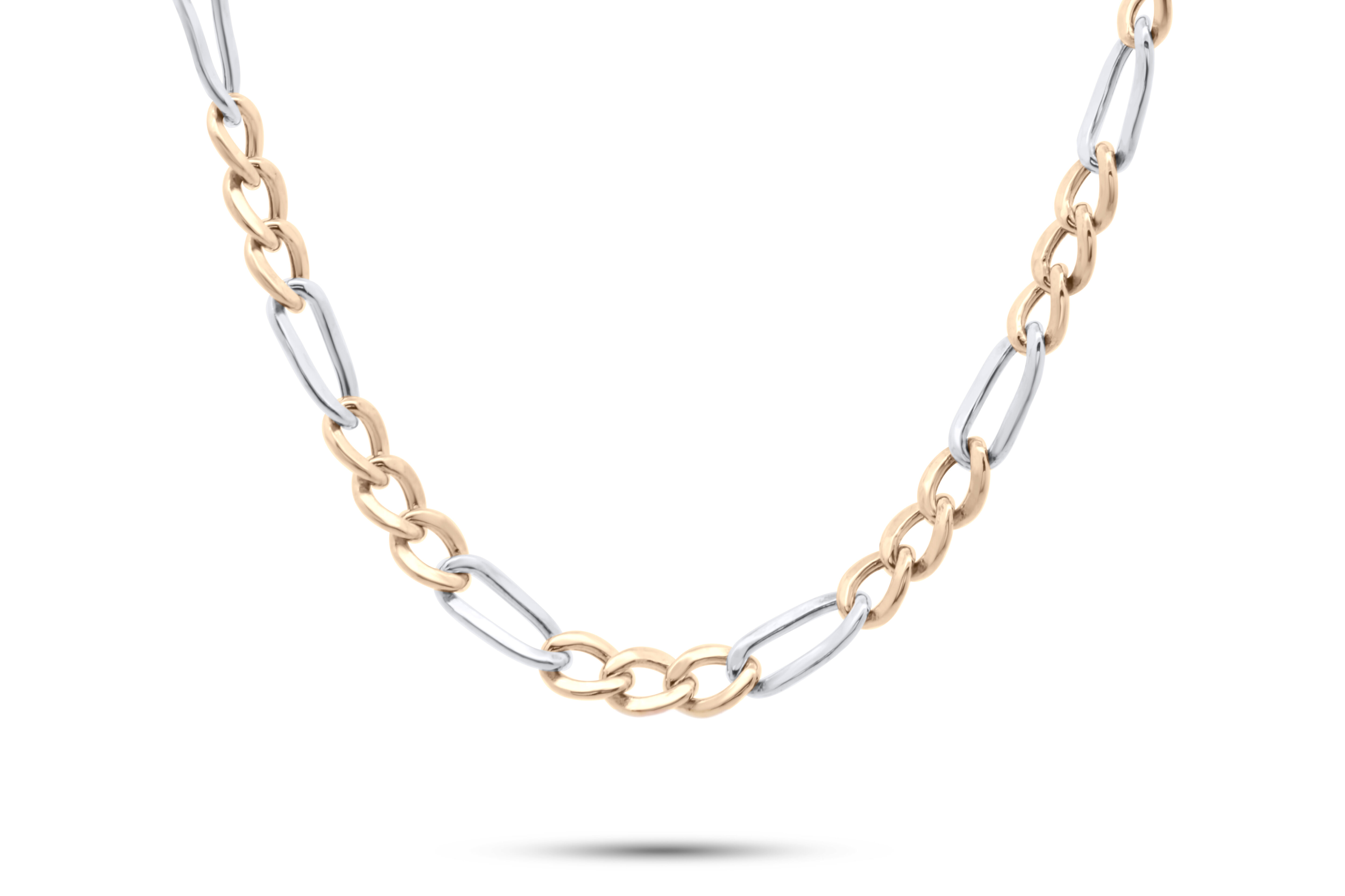 Deze bicolor collier uit de Ed Nobel collectie is vervaardigd uit 14 karaat goud.
