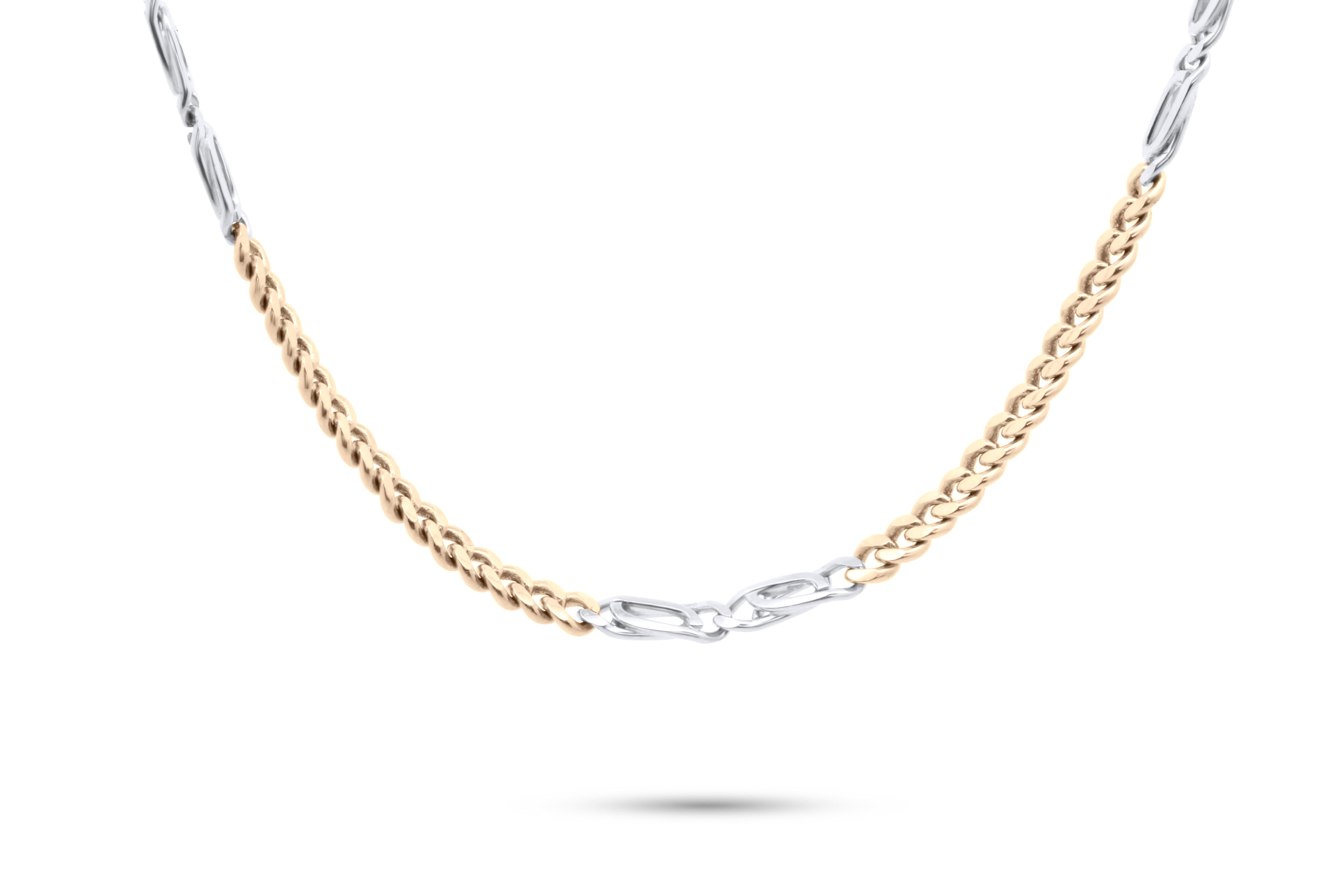 Deze bicolor collier uit de Ed Nobel collectie is vervaardigd uit 14 karaat goud.