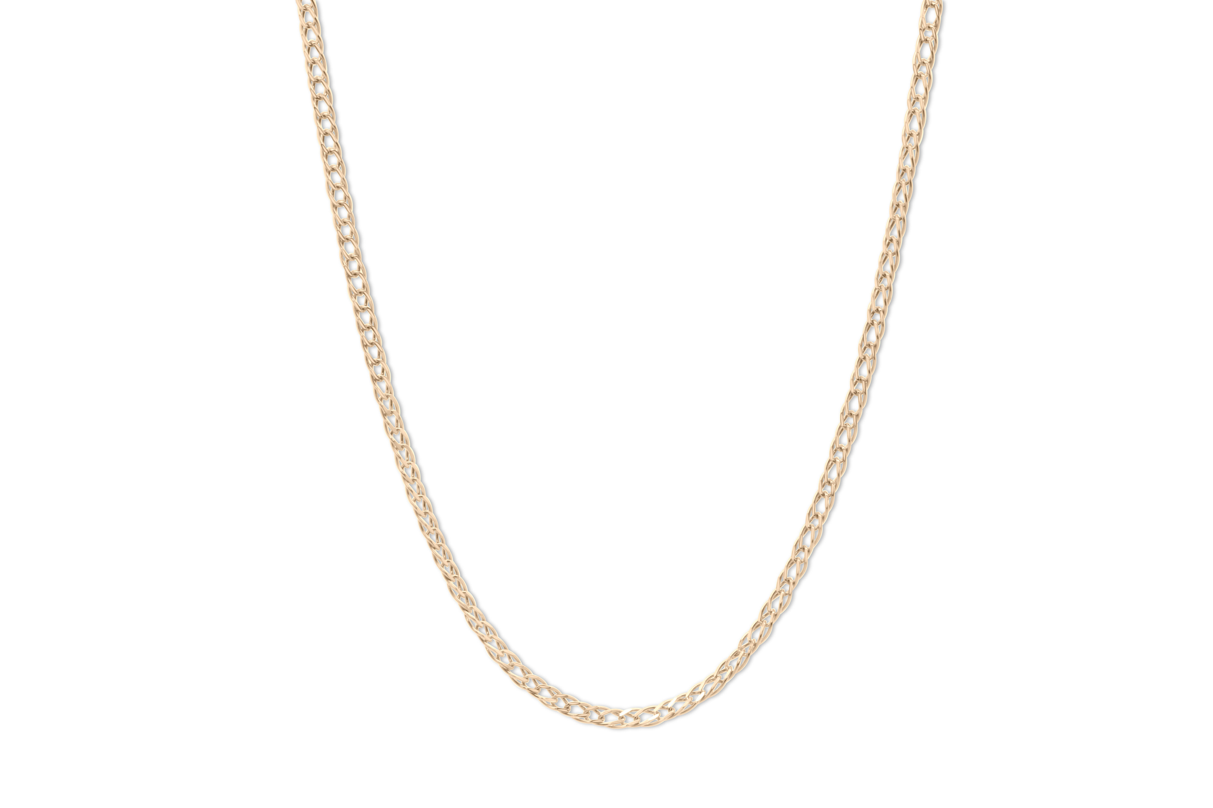 De fantasie ketting van 14 karaat geel goud is een perfect samenspel van creativiteit en vakmanschap. Het bijzondere schakelontwerp zorgt voor een speelse structuur met een zachte glans.