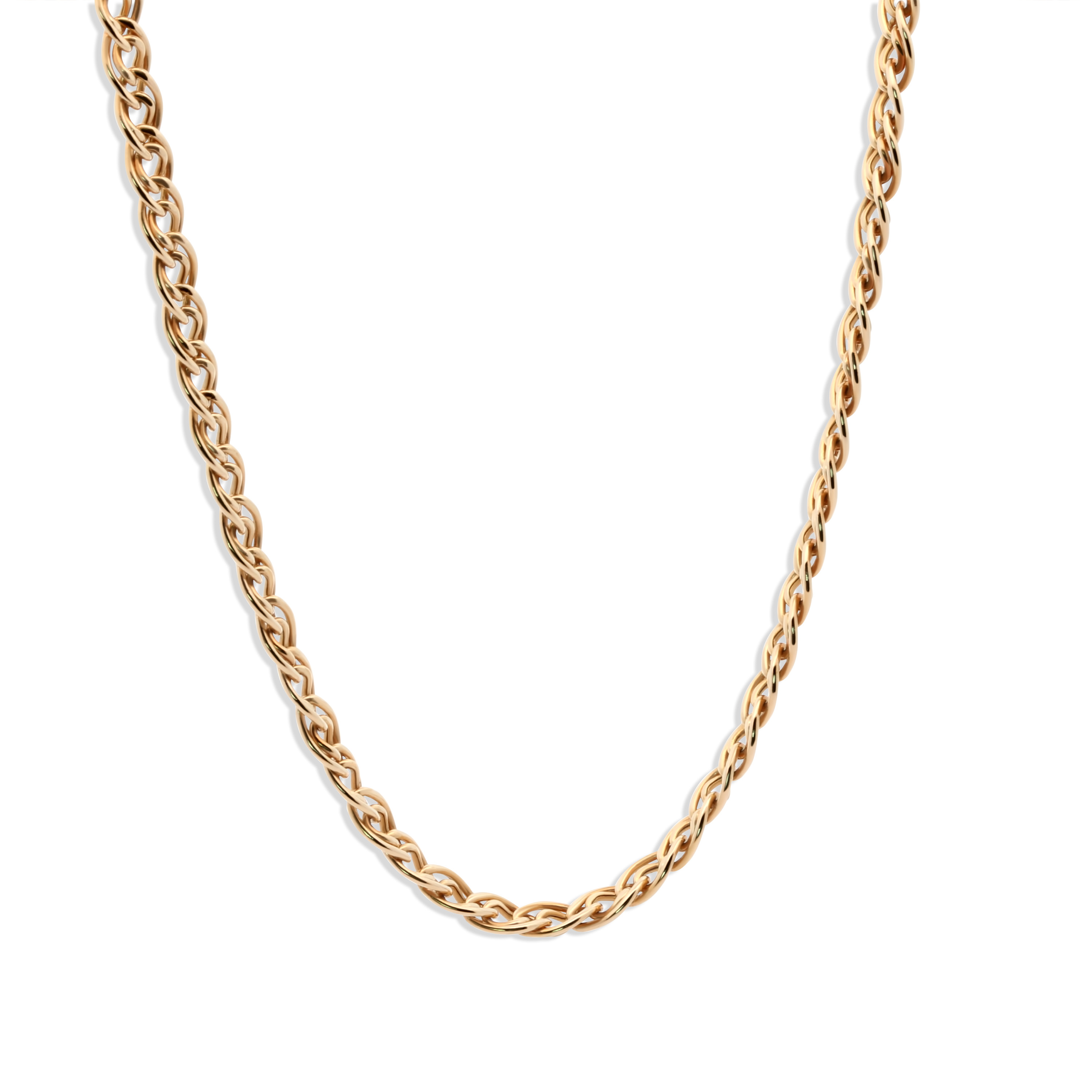 Deze elegante fantasie ketting is gemaakt van hoogwaardig 14 karaat geelgoud en heeft een verfijnde, unieke schakelstructuur. Met een lengte van 45 cm valt de ketting mooi rond de hals en is perfect te dragen bij elke gelegenheid.