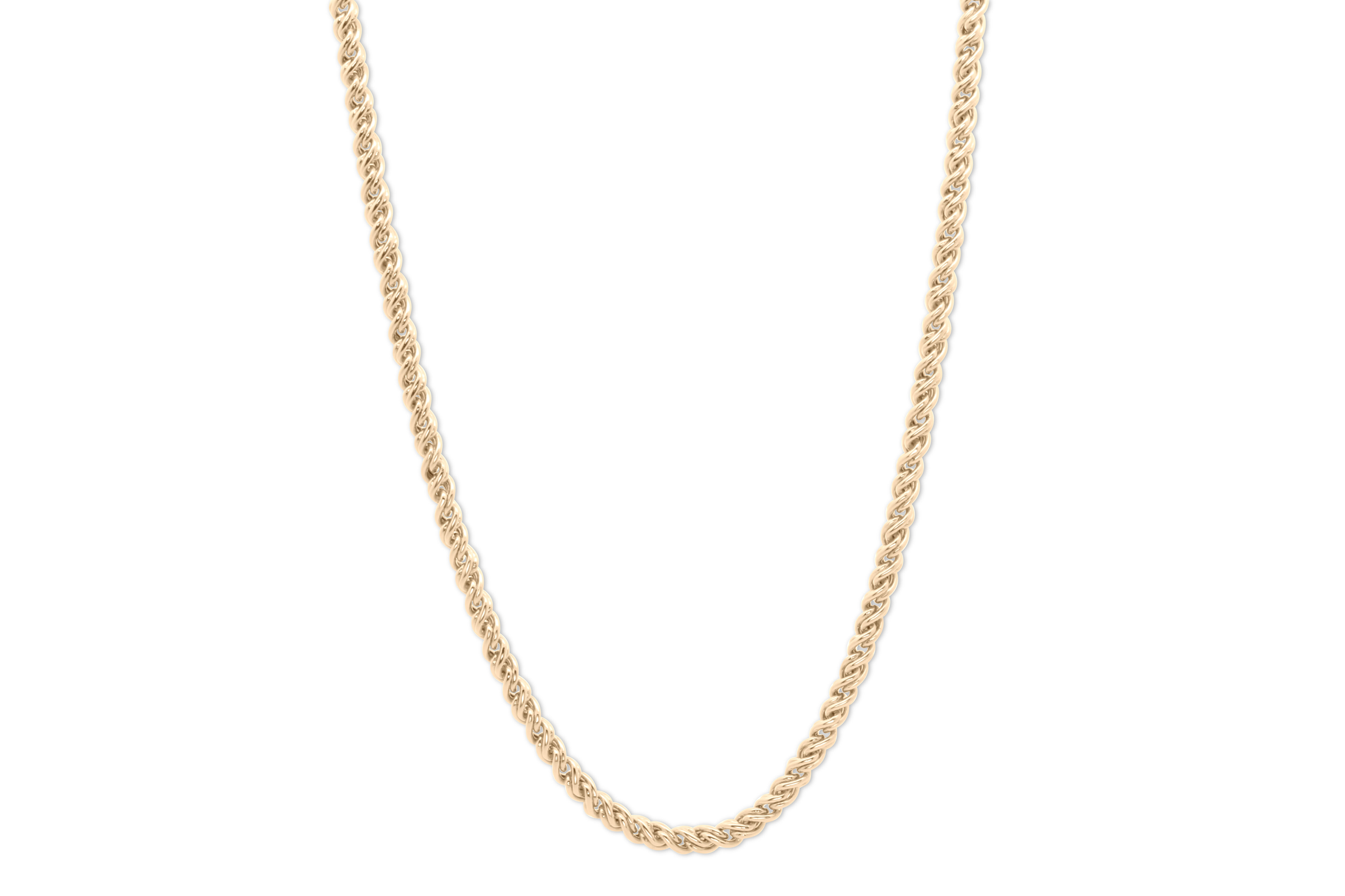 De fantasie ketting van 14 karaat geel goud combineert creatief design met een elegante uitstraling. Door de unieke schakeling is dit een ketting die direct de aandacht trekt, zonder te overdrijven.