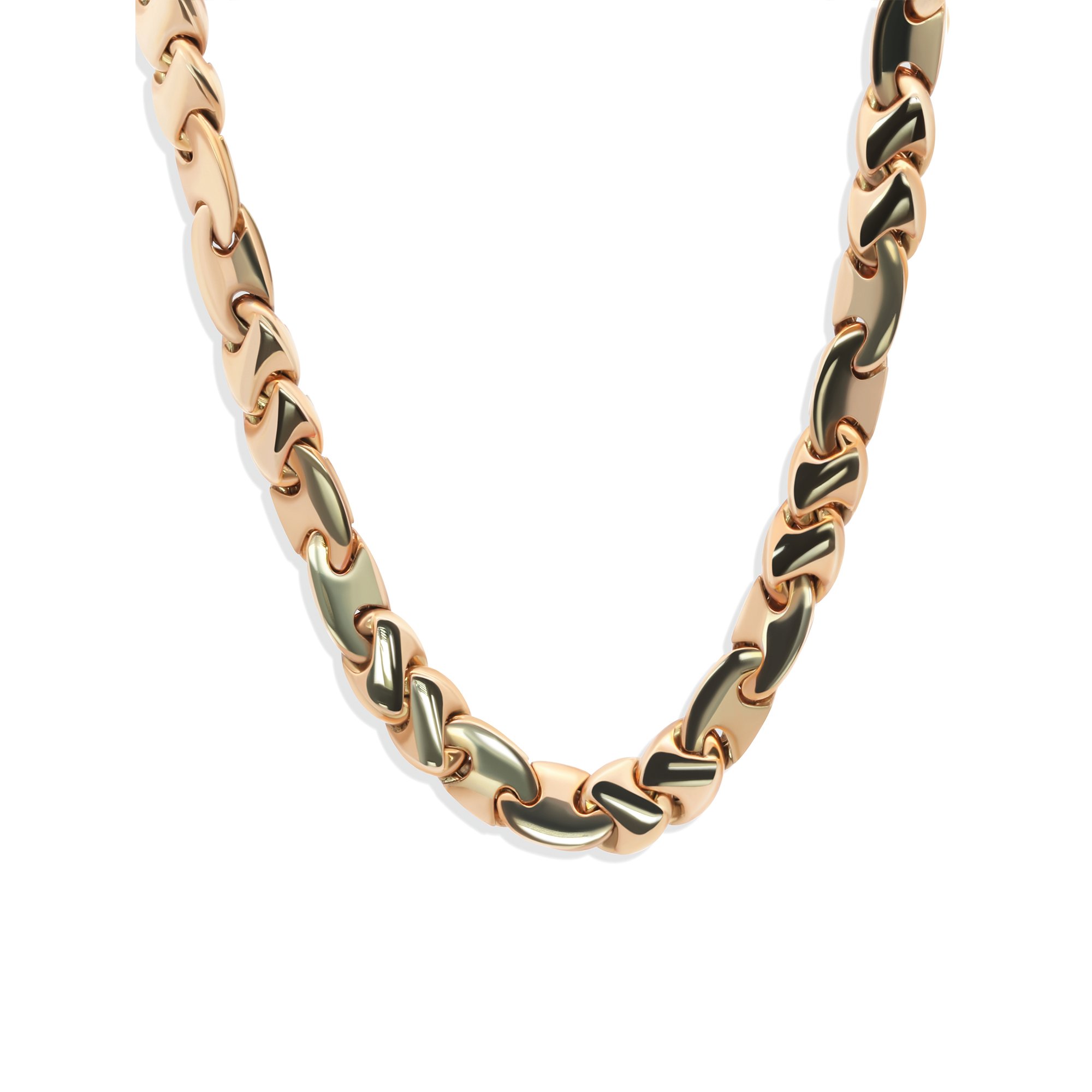 Deze geelgouden collier uit de Ed Nobel collectie is vervaardigd uit 14 karaat goud.