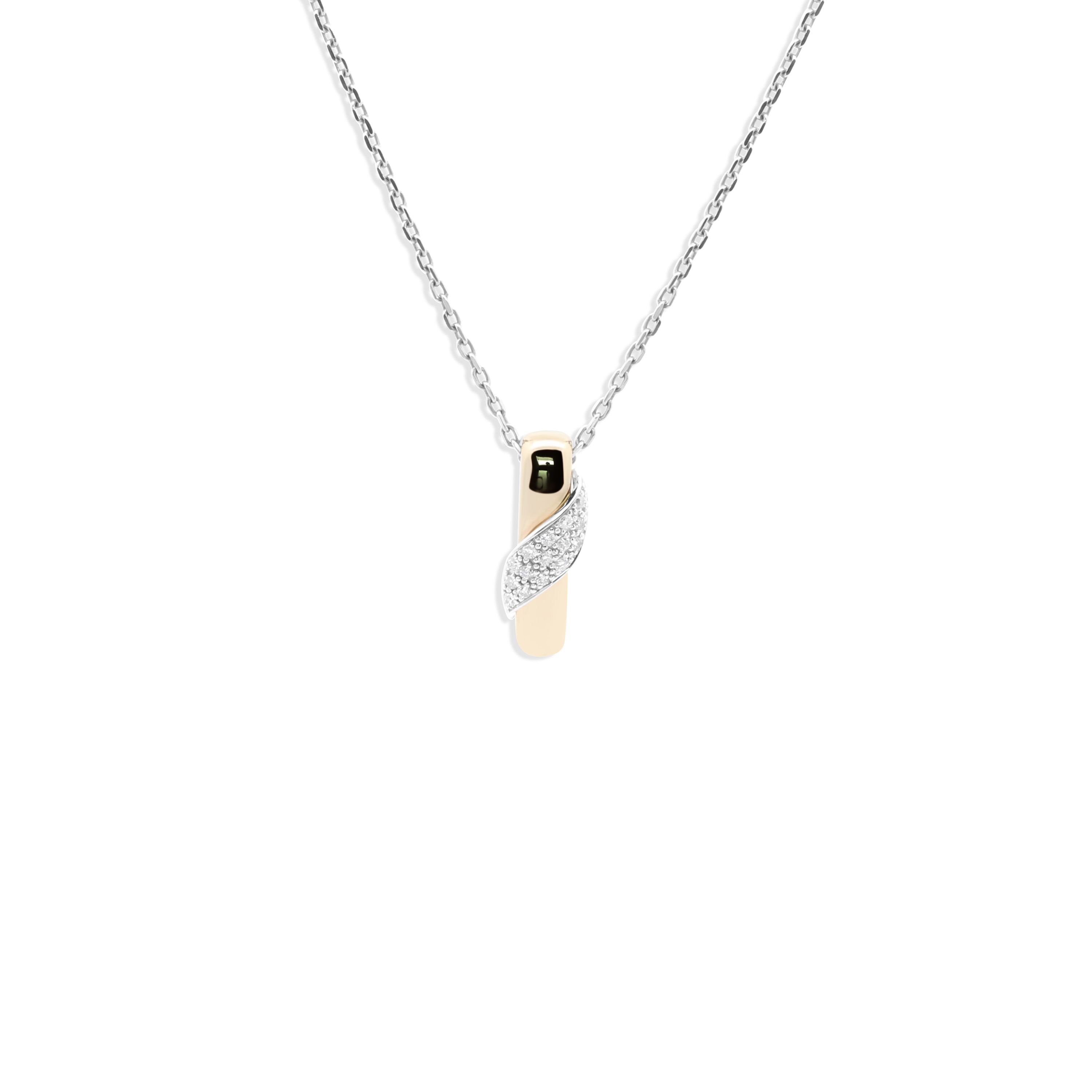 Deze verfijnde hanger is uitgevoerd in een stijlvolle combinatie van wit- en geelgoud en bezet met 15 schitterende witte lab-grown diamanten van elk 0,02 ct. Het strakke, elegante ontwerp geeft de hanger een tijdloze en luxueuze uitstraling.