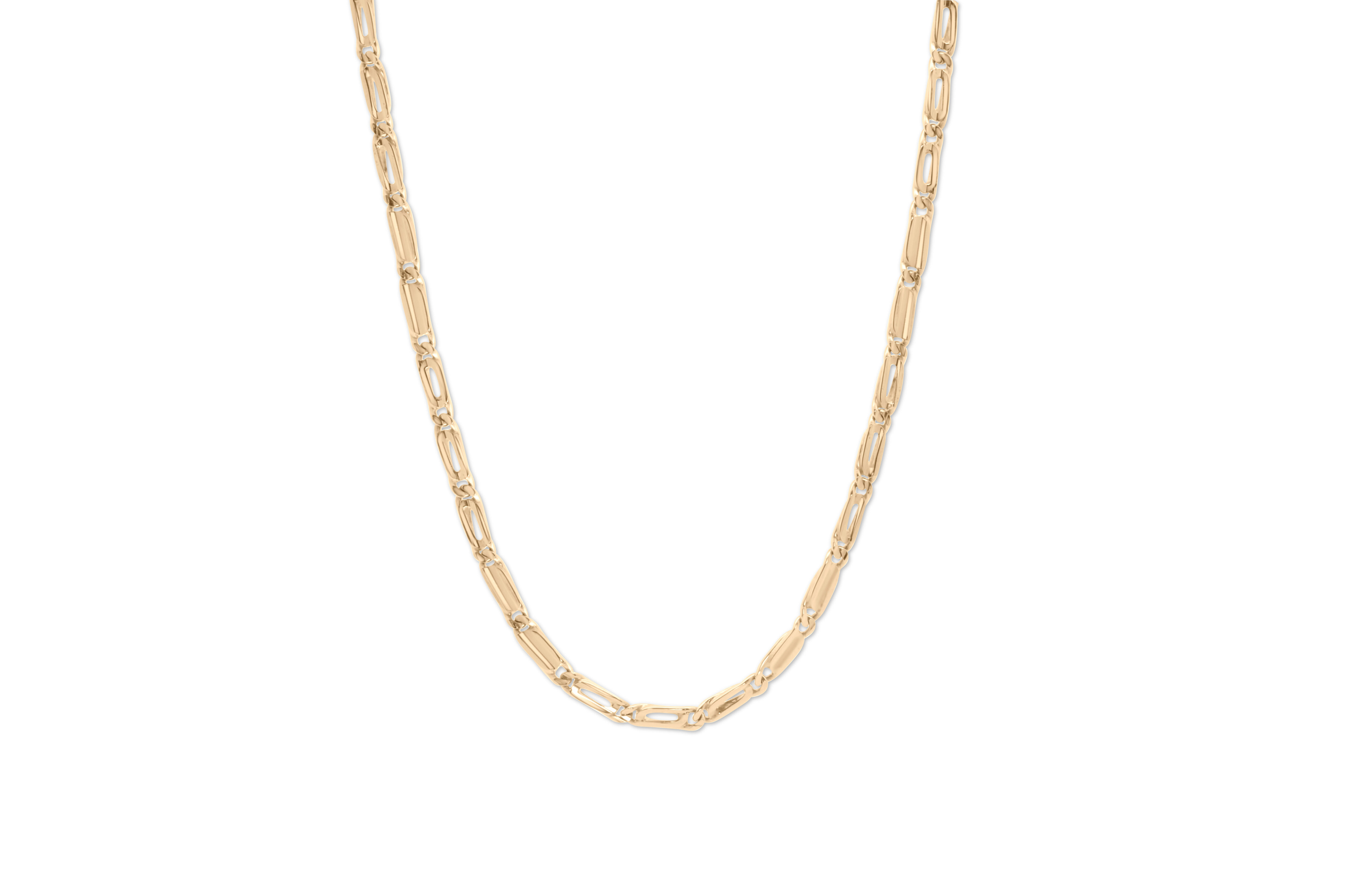 Deze 14 karaat geelgouden Figaro ketting is een klassiek sieraad met een herkenbaar patroon van afwisselend korte en lange schakels. De solide afwerking en warme gloed van geel goud maken dit een tijdloze ketting die bij elke stijl past.