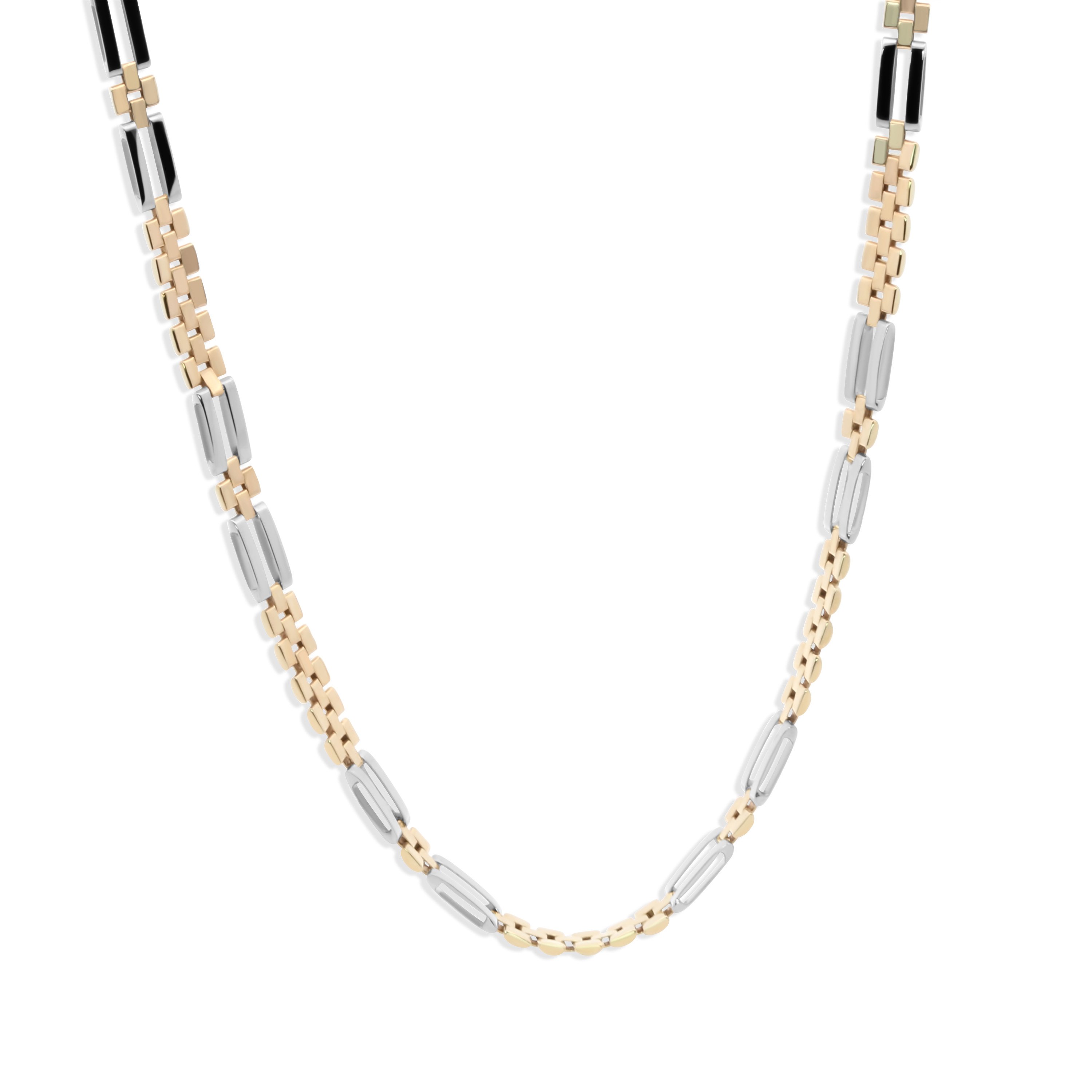 Deze exclusieve Rolex-ketting van 14 karaat wit- en geelgoud is een waar sieraad voor liefhebbers van luxe en detail. De kenmerkende Rolex-schakel staat bekend om zijn stevigheid en luxe uitstraling, terwijl de combinatie van wit- en geelgoud zorgt voor een stijlvol kleurcontrast dat direct in het oog springt.