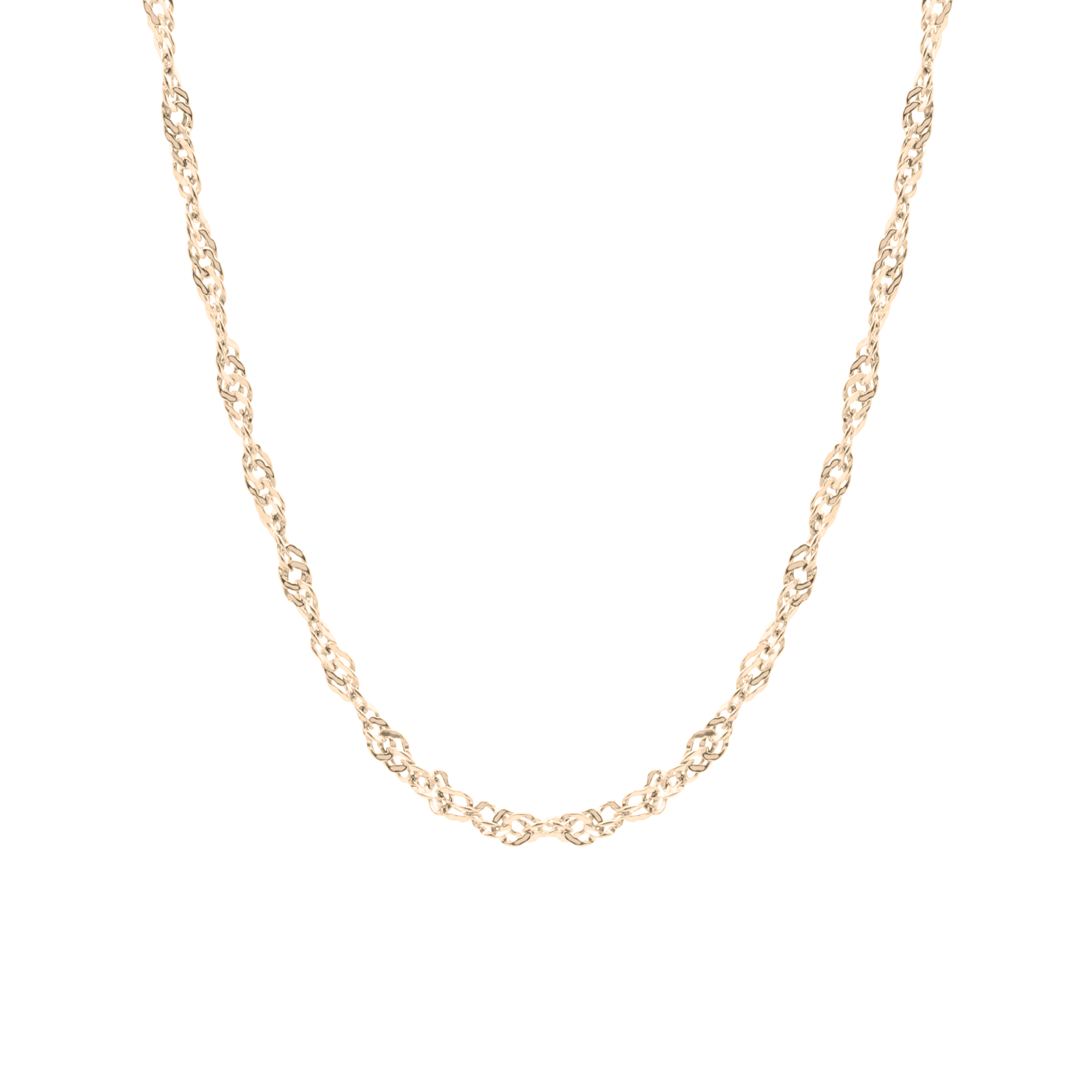 Deze geelgouden collier uit de Ed Nobel collectie is vervaardigd uit 14 karaat goud.