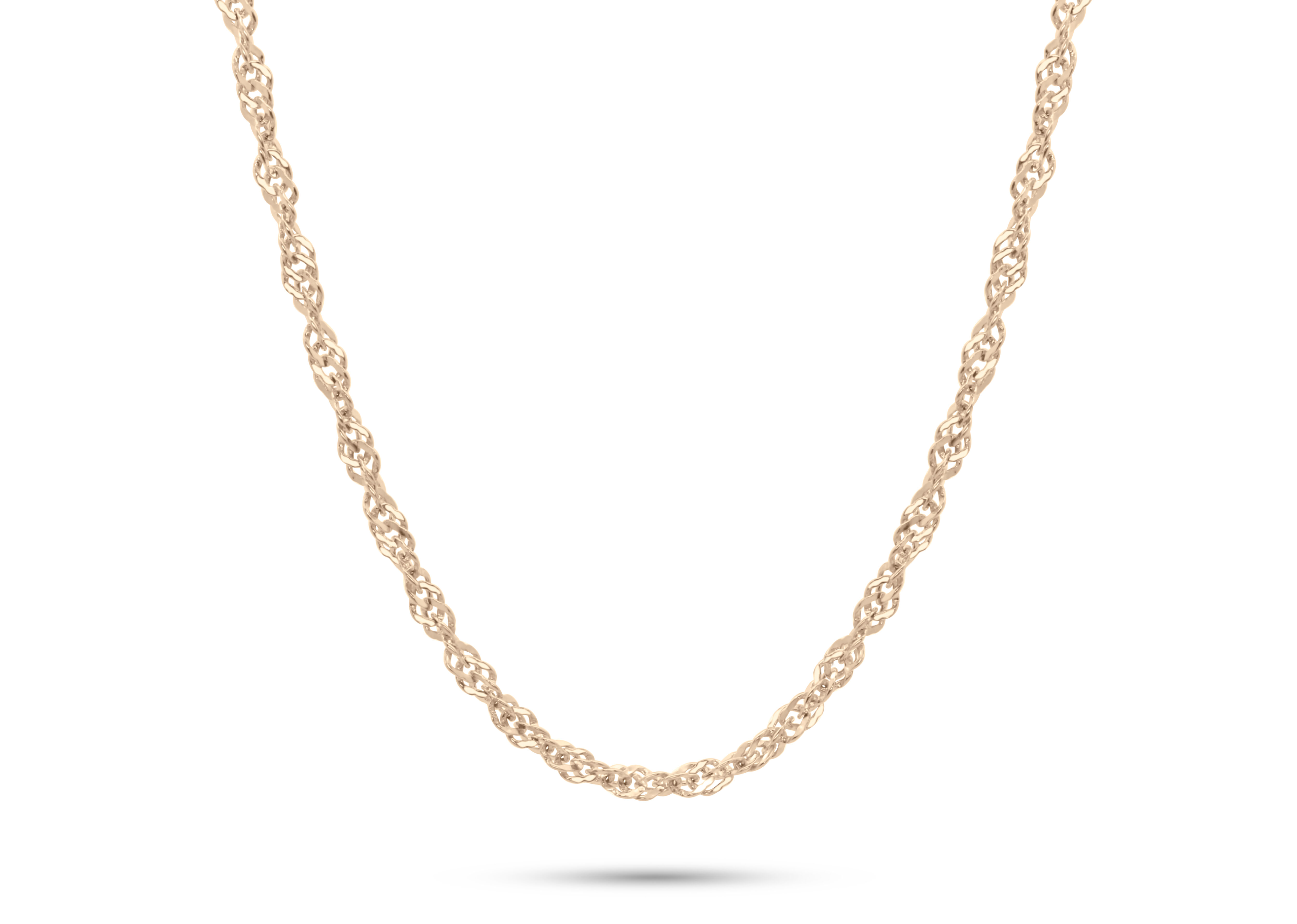 Deze geelgouden collier uit de Ed Nobel collectie is vervaardigd uit 14 karaat goud.