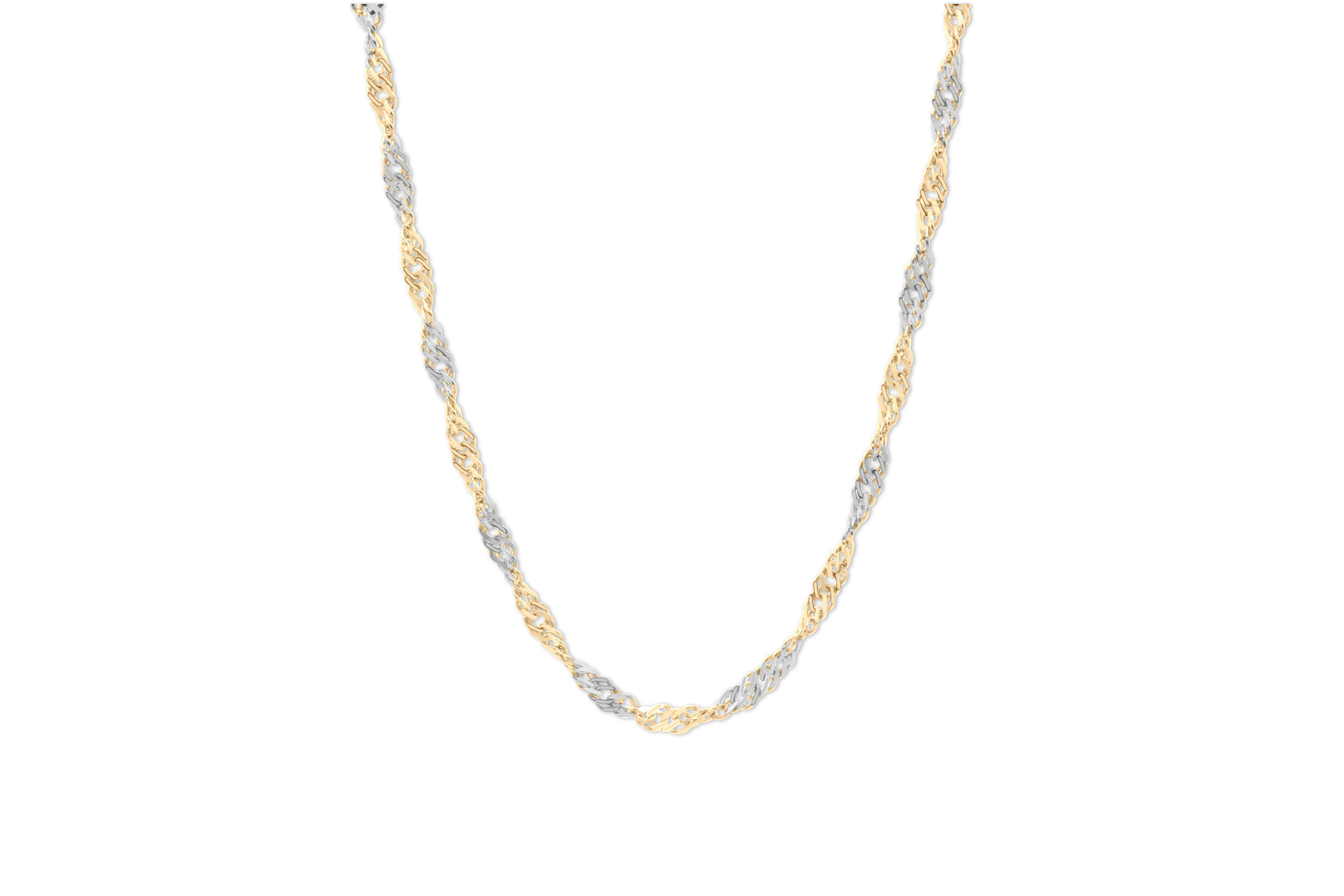 De combinatie van geel en witgoud in deze 14 karaat Singapore ketting geeft het sieraad een subtiele maar karaktervolle uitstraling. Een echte blikvanger.