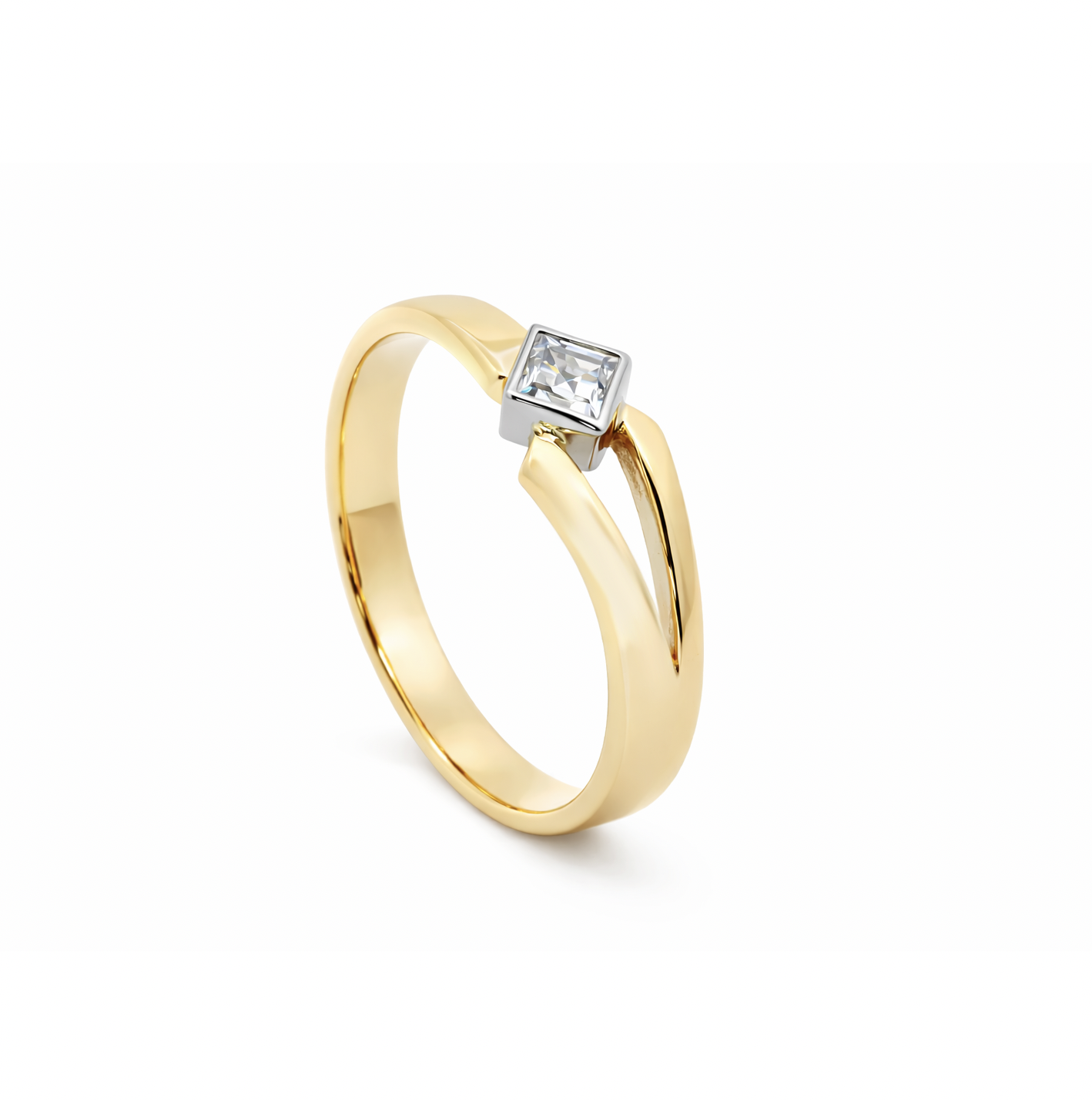 Deze bicolor ring uit de Ed Nobel collectie is vervaardigd uit geel en wit goud met zirkonia.
