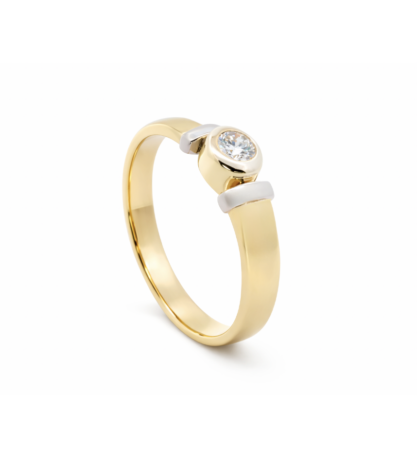 Deze bicolor ring uit de Ed Nobel collectie is vervaardigd uit geel en wit goud met diamant.