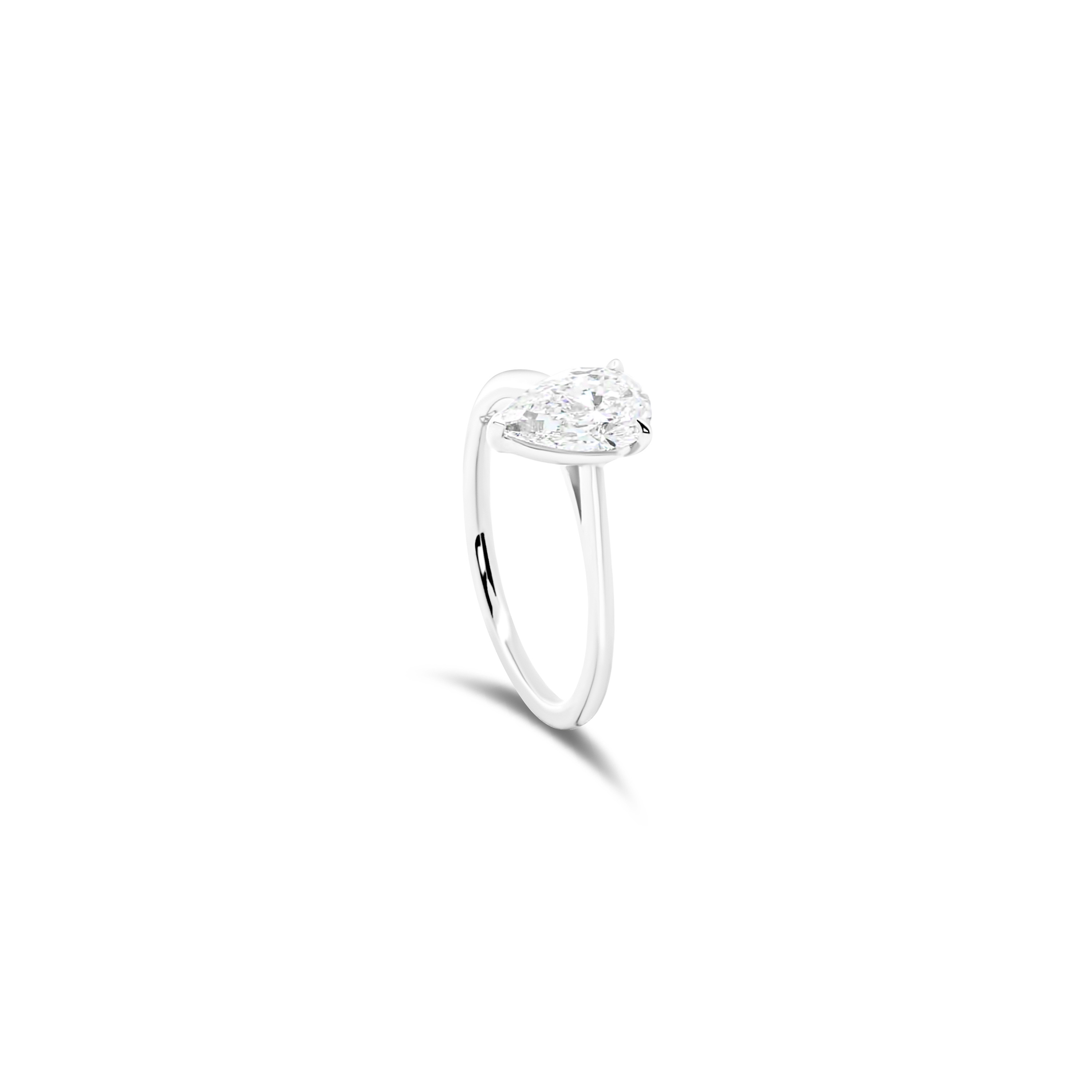 Deze verfijnde ring van witgoud is bezet met een schitterende 1,01 ct witte lab-grown diamant in een elegante druppelvorm. De unieke vorm van de diamant benadrukt de schittering en geeft het sieraad een tijdloze en verfijnde uitstraling. Perfect voor wie op zoek is naar een stijlvolle combinatie van moderne duurzaamheid en klassieke elegantie. Een prachtig statementstuk dat zowel bij speciale gelegenheden als dagelijks gedragen kan worden.