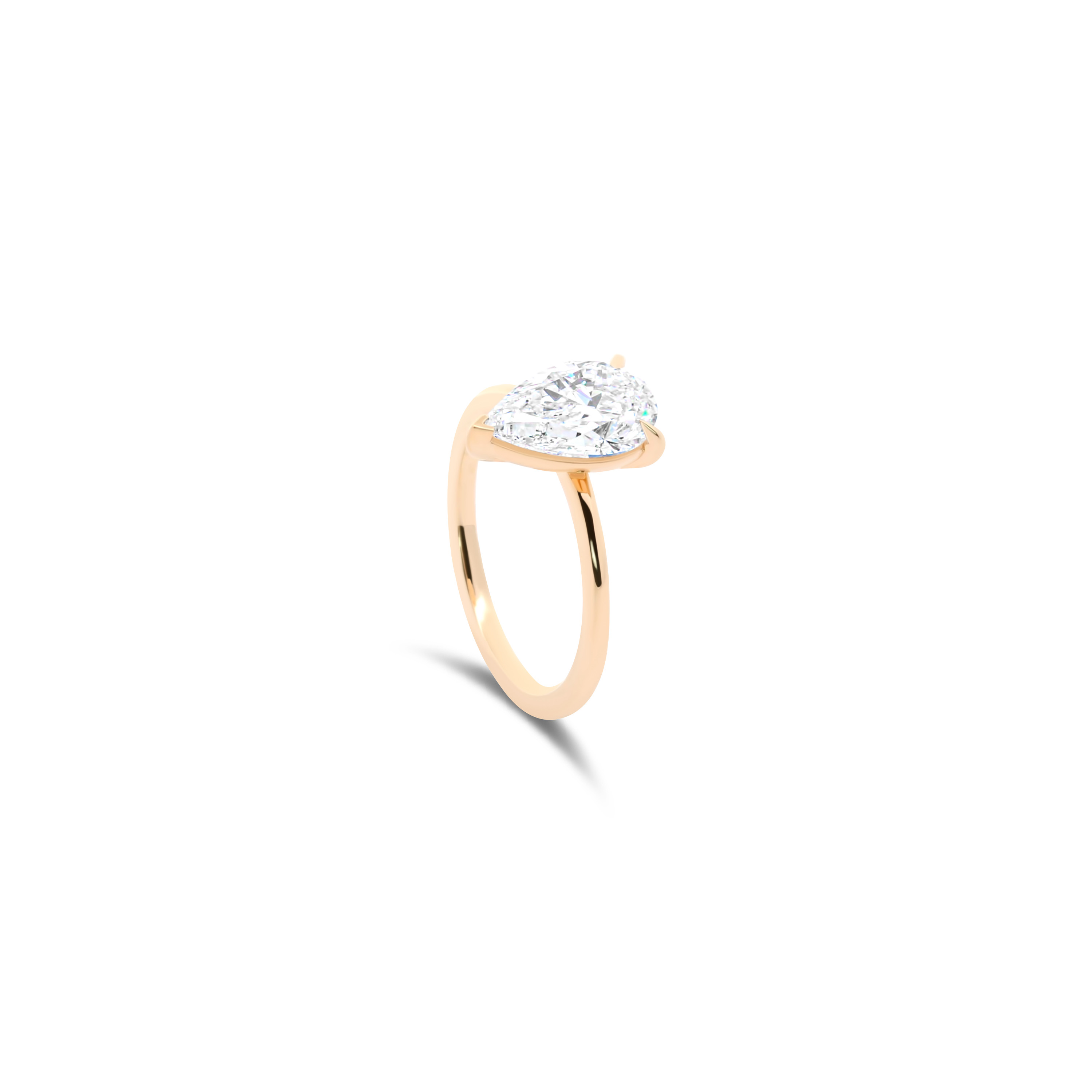 Deze elegante geelgouden ring is een subtiele blikvanger met een klassieke uitstraling. Het ontwerp wordt gekenmerkt door een schitterende peervormige diamant als middelpunt, die volledig tot zijn recht komt dankzij de minimalistische en verfijnde setting. De slanke, gepolijste band van 14-karaats geelgoud benadrukt de tijdloze elegantie van de ring en laat de unieke vorm van de diamant stralen in al haar eenvoud.