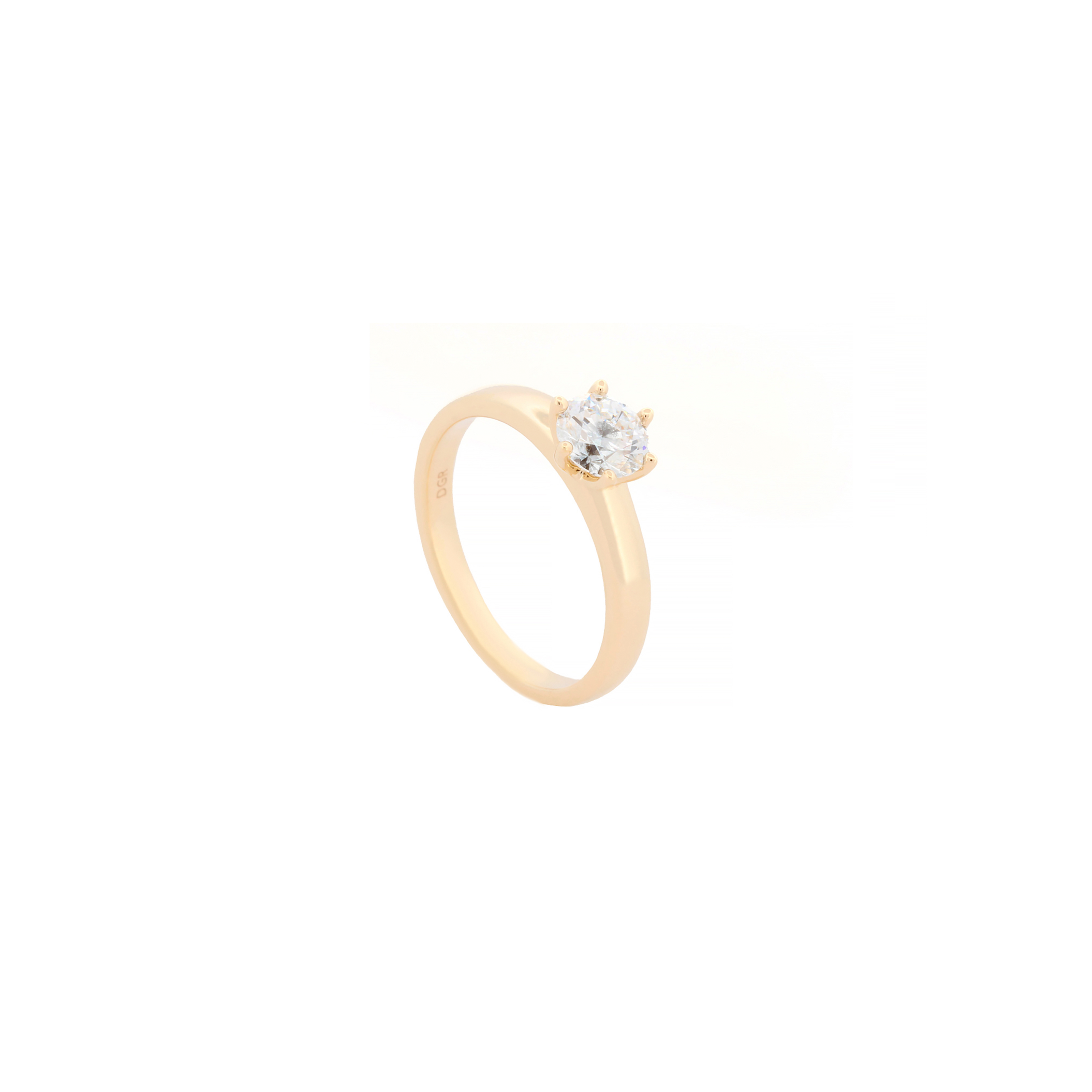 Het ontwerp is klassiek en verfijnd, waarbij de grote diamant centraal staat en perfect wordt aangevuld door de warme gloed van het geel goud. Deze ring is ideaal voor wie houdt van een subtiel maar krachtig statement.