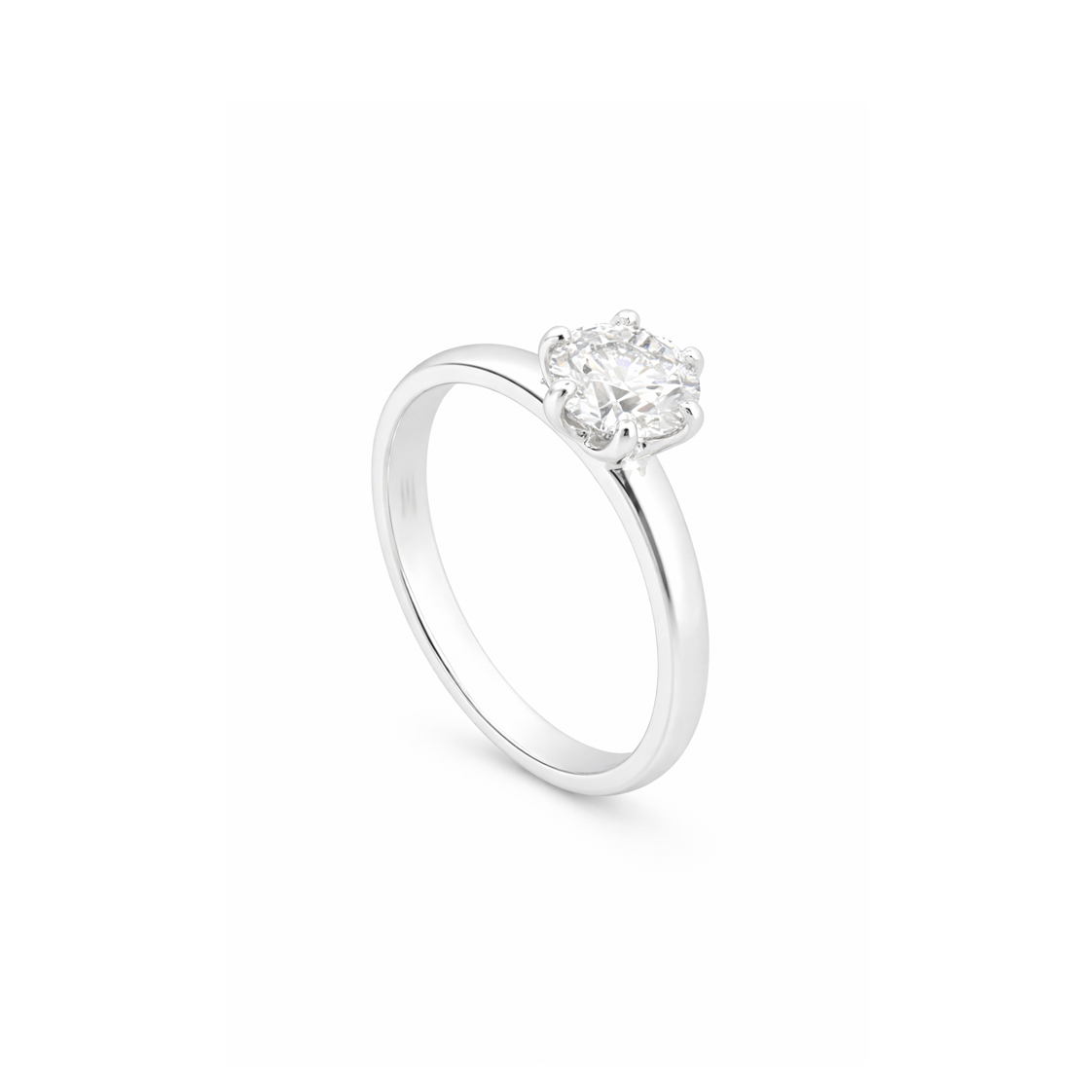 Deze Witgouden ring uit de Ed Nobel collectie is vervaardigd met een briljant geslepen diamant.