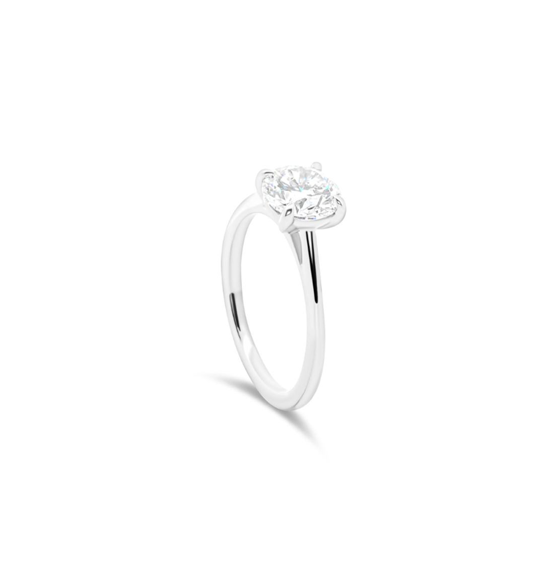 Deze Witgouden ring uit de Ed Nobel collectie is vervaardigd met een briljant geslepen diamant.
