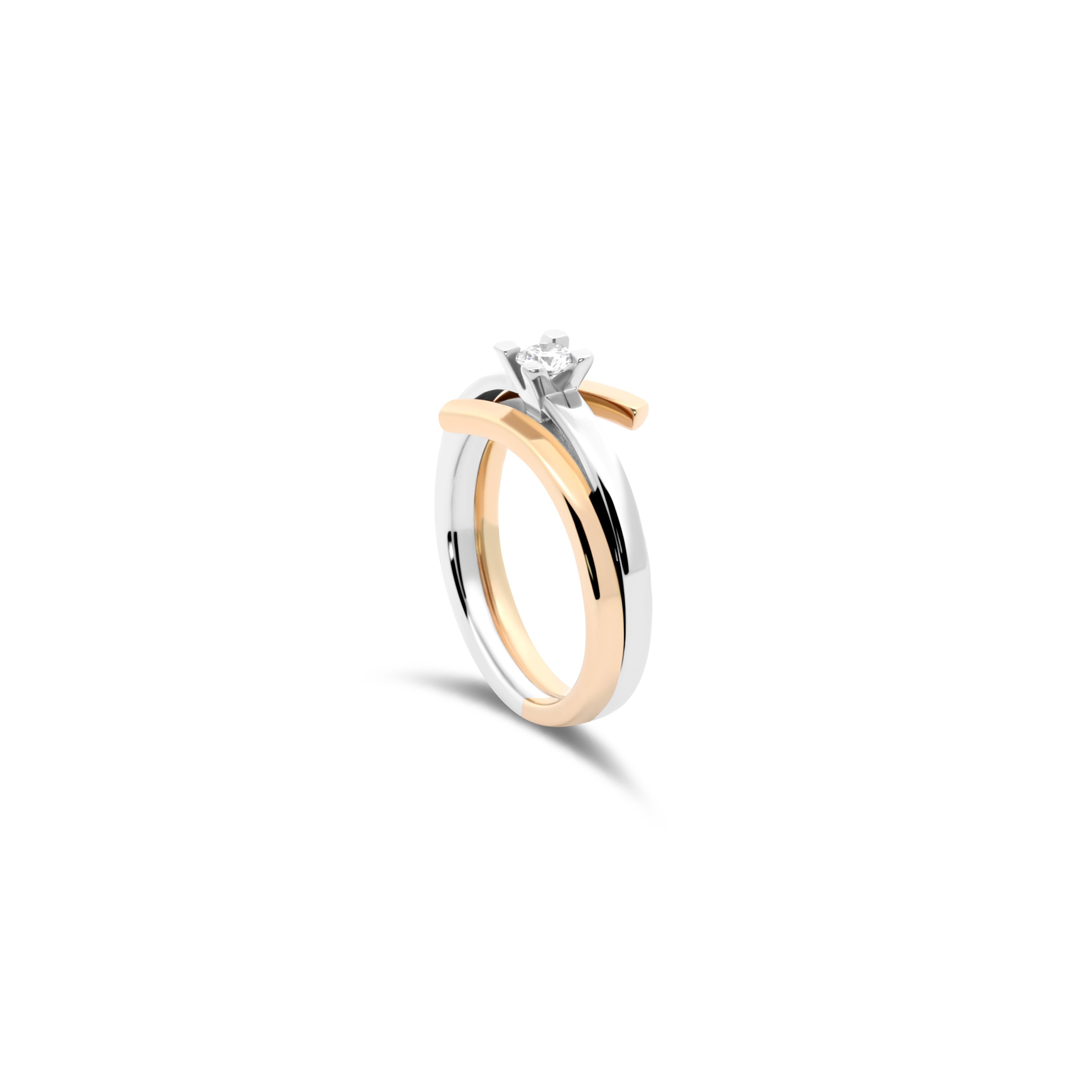 Prachtige ring van wit en geel goud, met een schitterende natuurlijke witte diamant van 0,20 ct. Tijdloos en elegant, perfect voor elke gelegenheid.