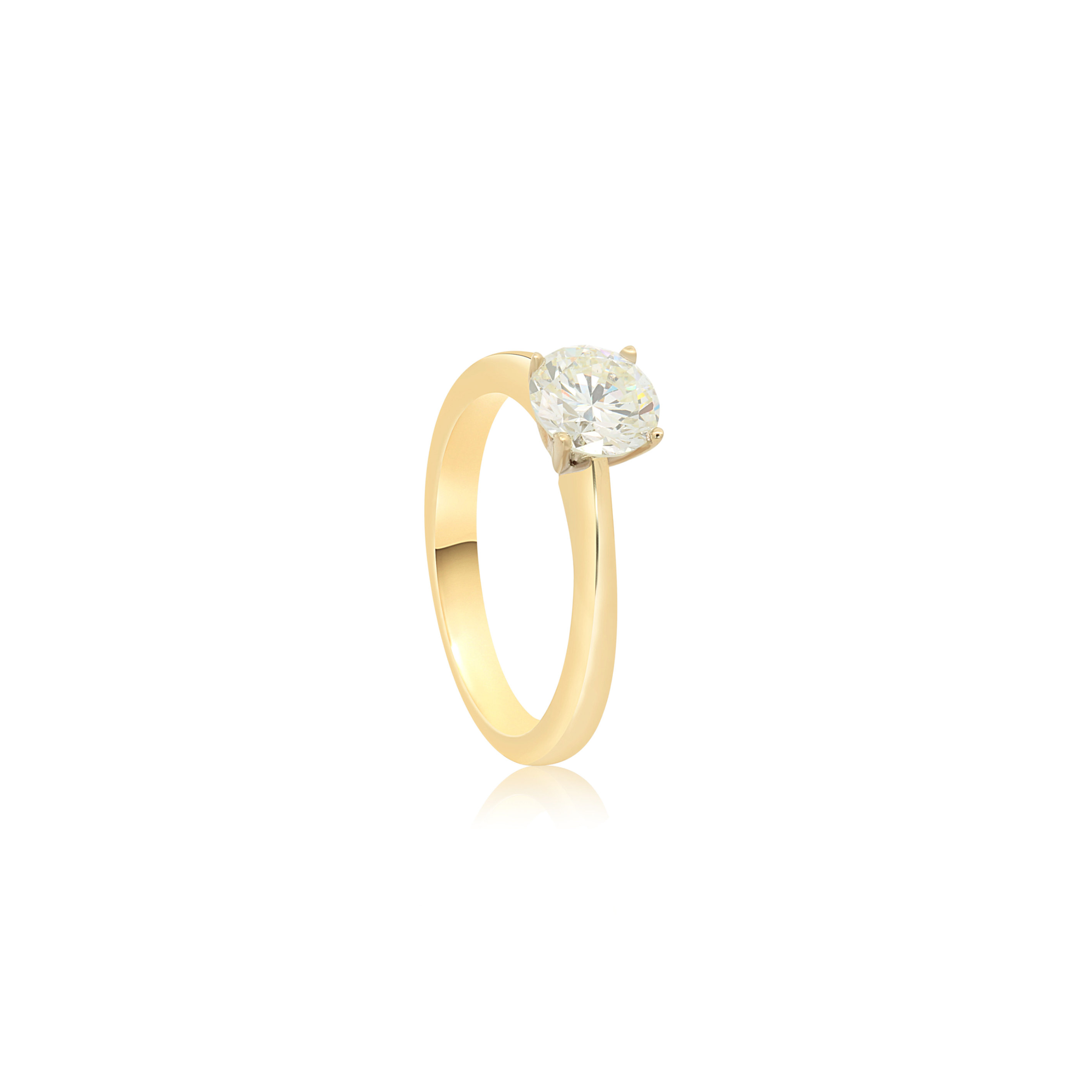 Deez geelgouden fantasie ring is vervaardig met een 1,20ct briljant geslepen diamant.