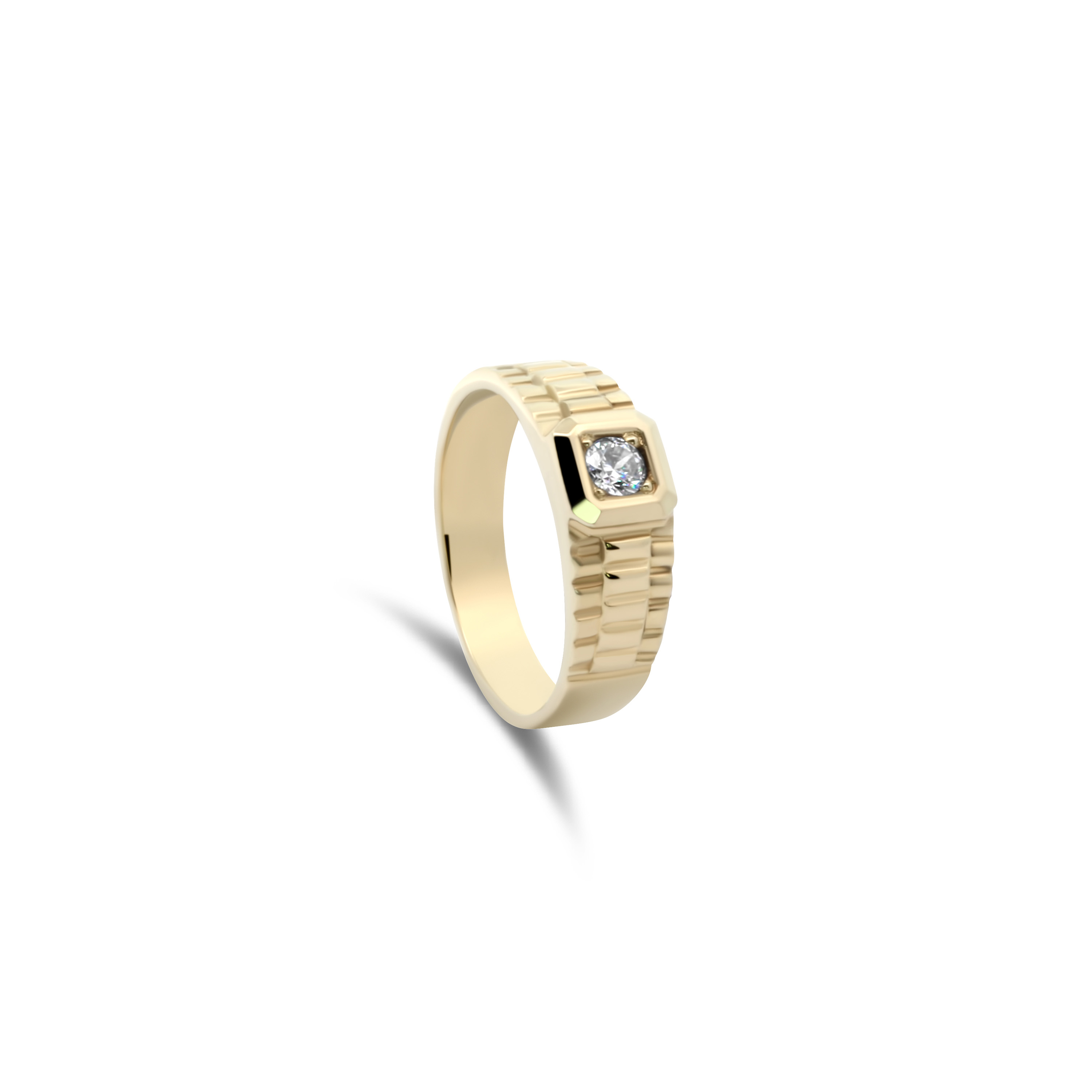 Deze stijlvolle ring van geelgoud is gezet met een fonkelende witte zirkonia, die een sprankelende en elegante touch toevoegt. Het tijdloze ontwerp maakt het sieraad perfect voor dagelijks dragen of als verfijning bij speciale gelegenheden. Een schitterend accessoire dat eenvoud en charme moeiteloos combineert.