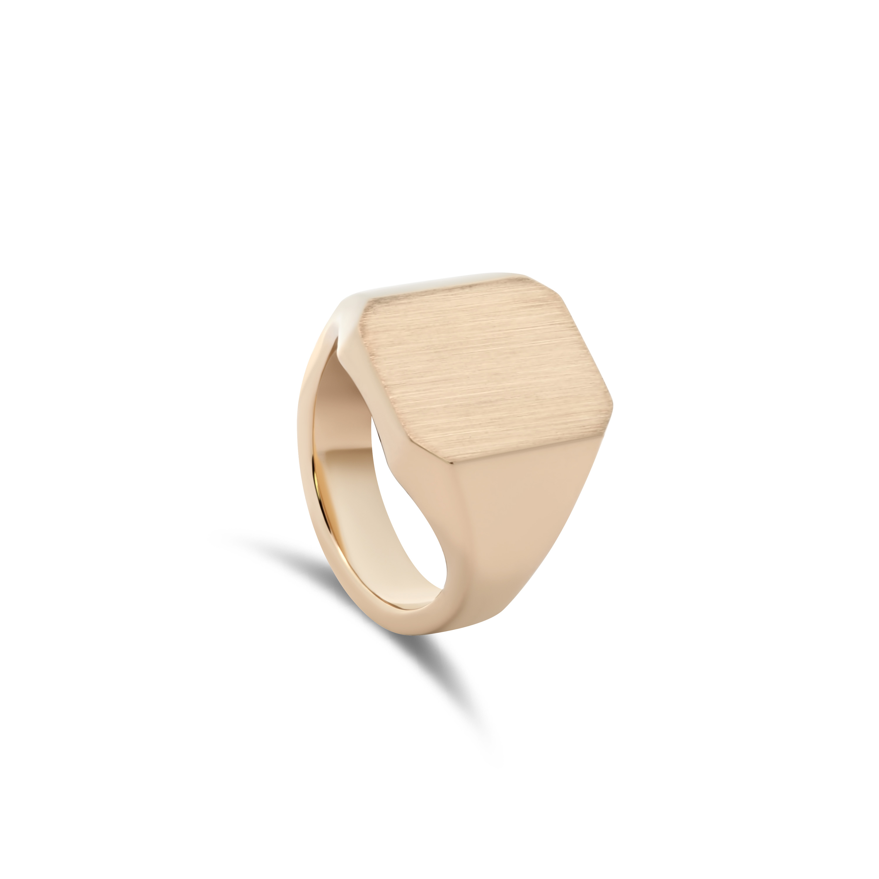 Deze geelgouden zegelring onderscheidt zich door de matte afwerking op de bovenkant, wat zorgt voor een verfijnde, moderne look. Het tijdloze design maakt de ring geschikt voor dagelijks dragen en geeft een stijlvolle, subtiele touch aan elke outfit.