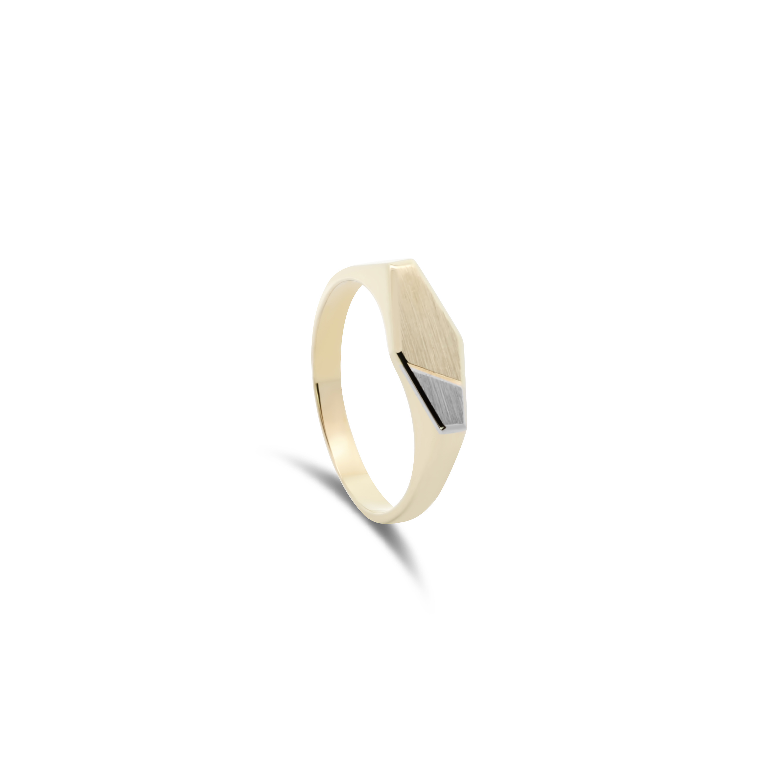 Deze smalle bicolor zegelring combineert elegant wit- en geelgoud in een strak en verfijnd ontwerp. De smalle band geeft het sieraad een subtiele en tijdloze uitstraling, ideaal voor wie houdt van een minimalistische maar stijlvolle ring. Perfect om zowel solo als in combinatie met andere ringen te dragen.