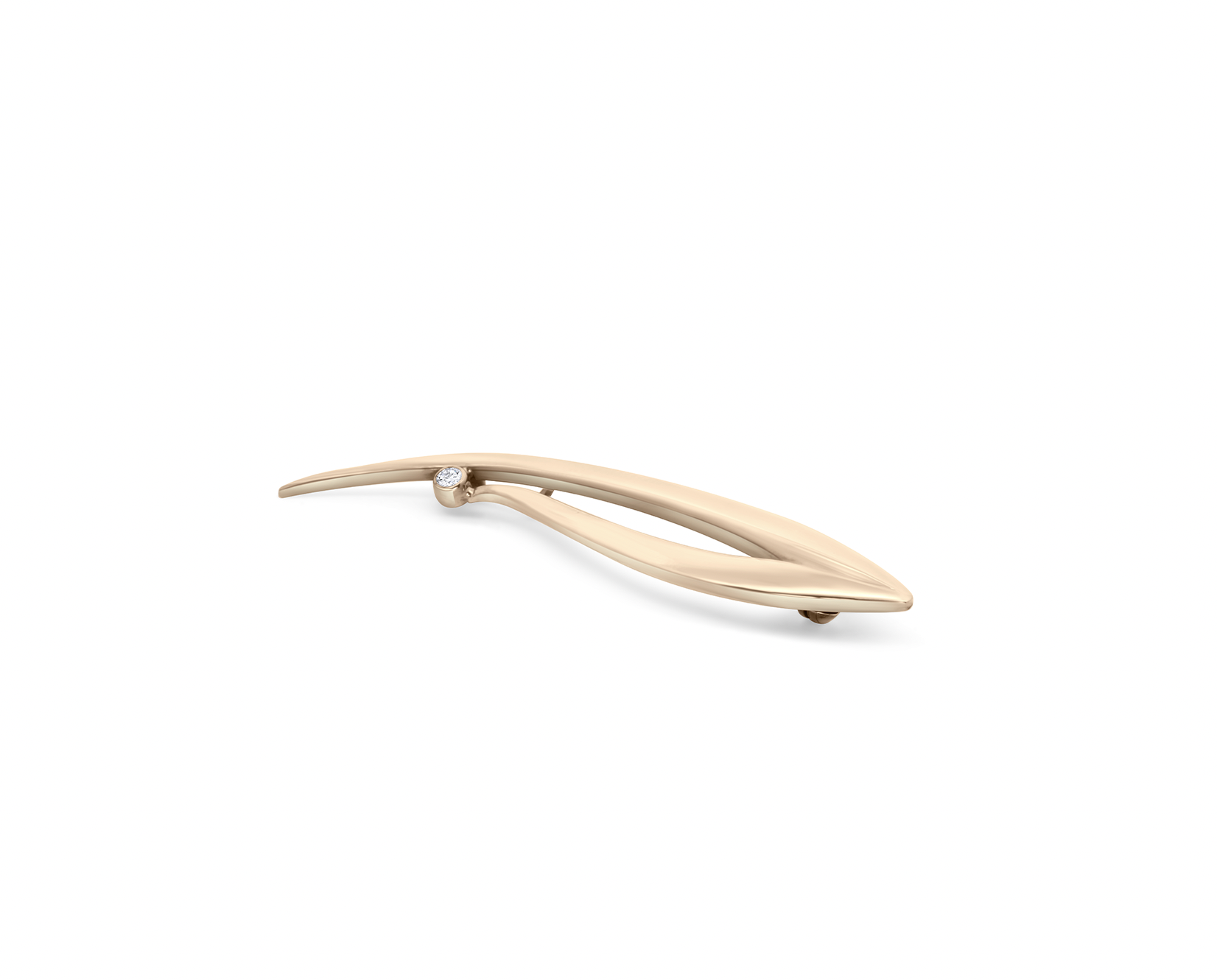 Deze geelgouden broche uit de Ed Nobel collectie is vervaardigd uit 14 karaat goud.