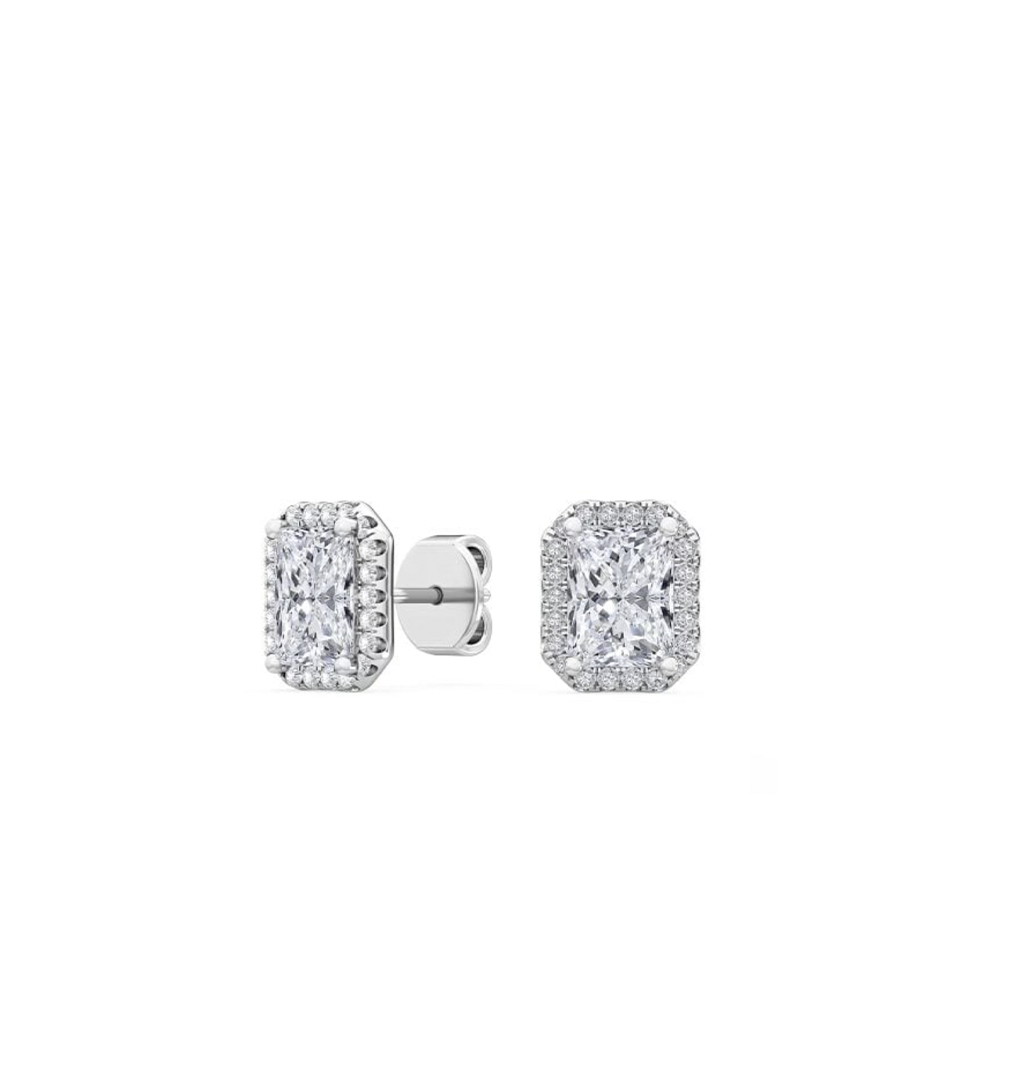 Deze witgouden oorstekers uit de Ed Nobel collectie zijn vervaardigd met briljant en emerald geslepen diamanten.