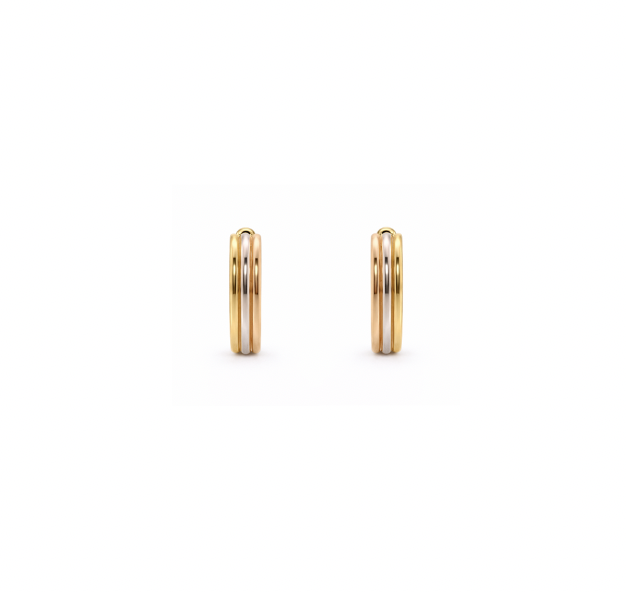 Deze tricolor oorsteker uit de Ed Nobel collectie zijn vervaardigd uit 14 karaat goud.