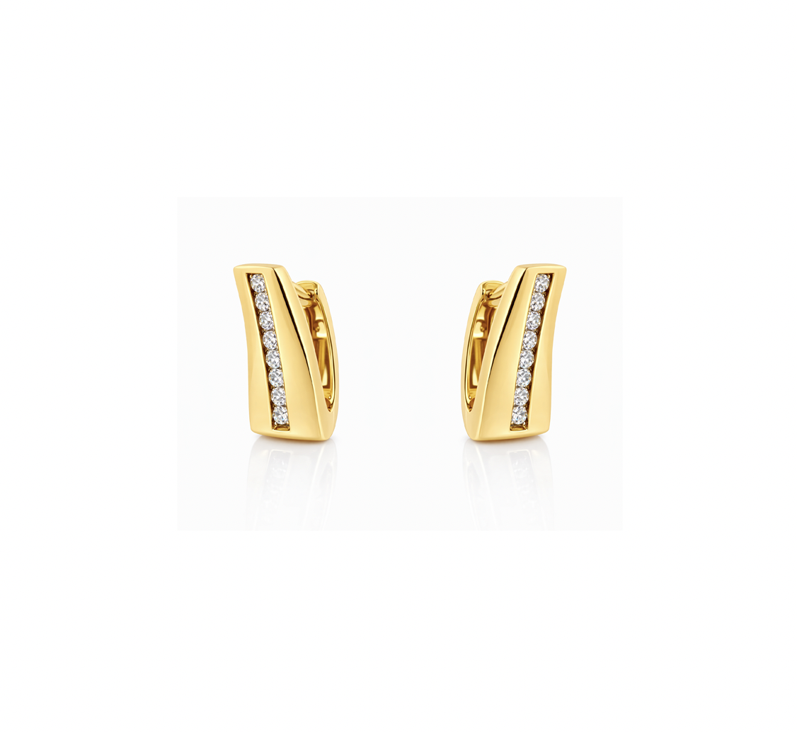 Deze geelgouden oorbellen uit de Ed Nobel collectie zijn vervaardigd uit 14 karaats geelgoud met briljant geslepen diamanten.