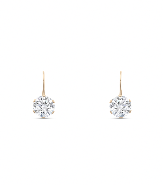 Deze geelgouden oorbellen uit de Ed Nobel collectie zijn vervaardigd met zirkonia stenen.