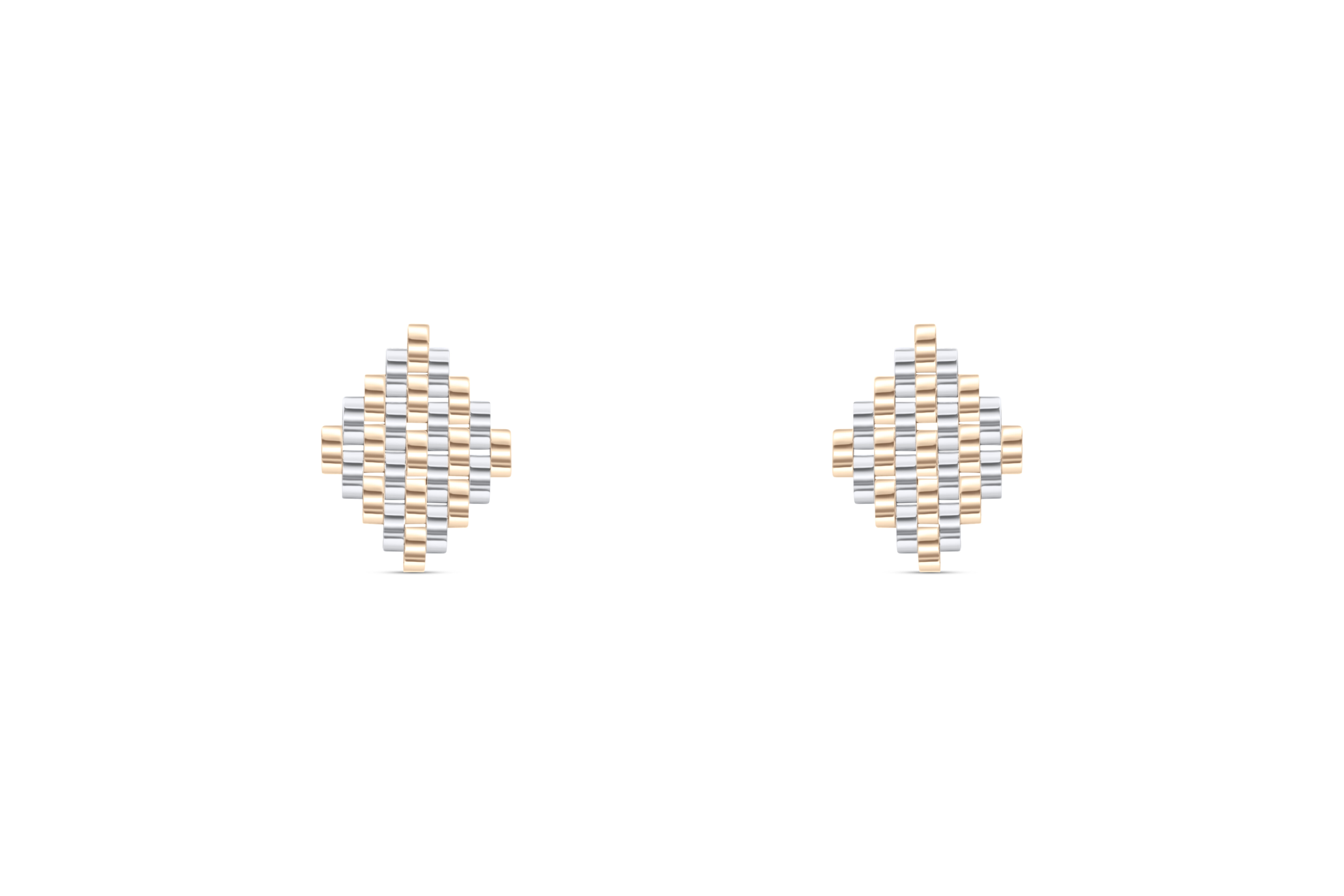 Deze bicolor oorbellen uit de Ed Nobel collectie zijn vervaardigd uit 14 karaats goud.