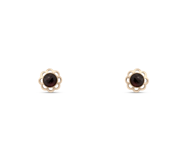 Deze geelgouden oorbellen uit de Ed Nobel collectie zijn vervaardigd met granaat stenen.