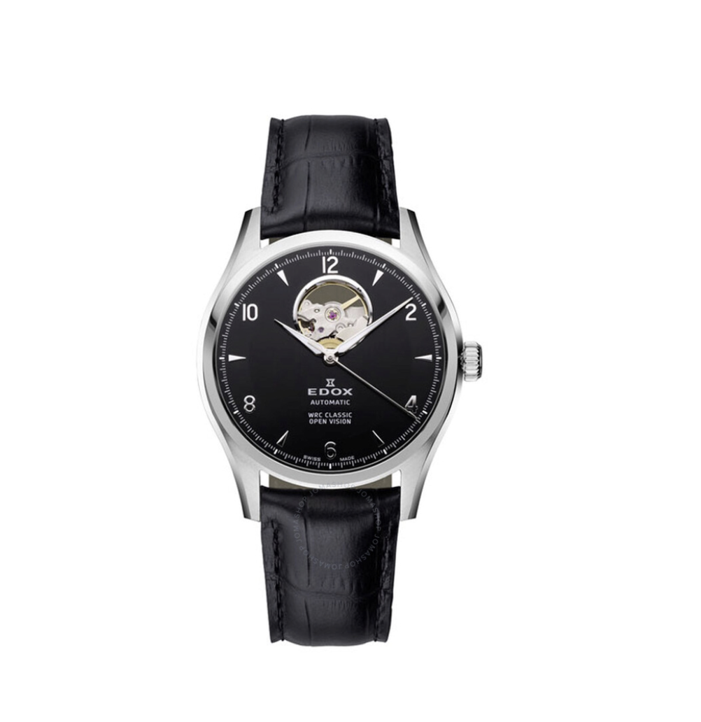 Dit Edox Automatic IRC Classic Open Vision horloge heeft een deels opengewerkt uurwerk, waardoor het verfijnde mechanisme zichtbaar is. Het combineert klassiek design met moderne techniek voor een elegante en bijzondere uitstraling.
