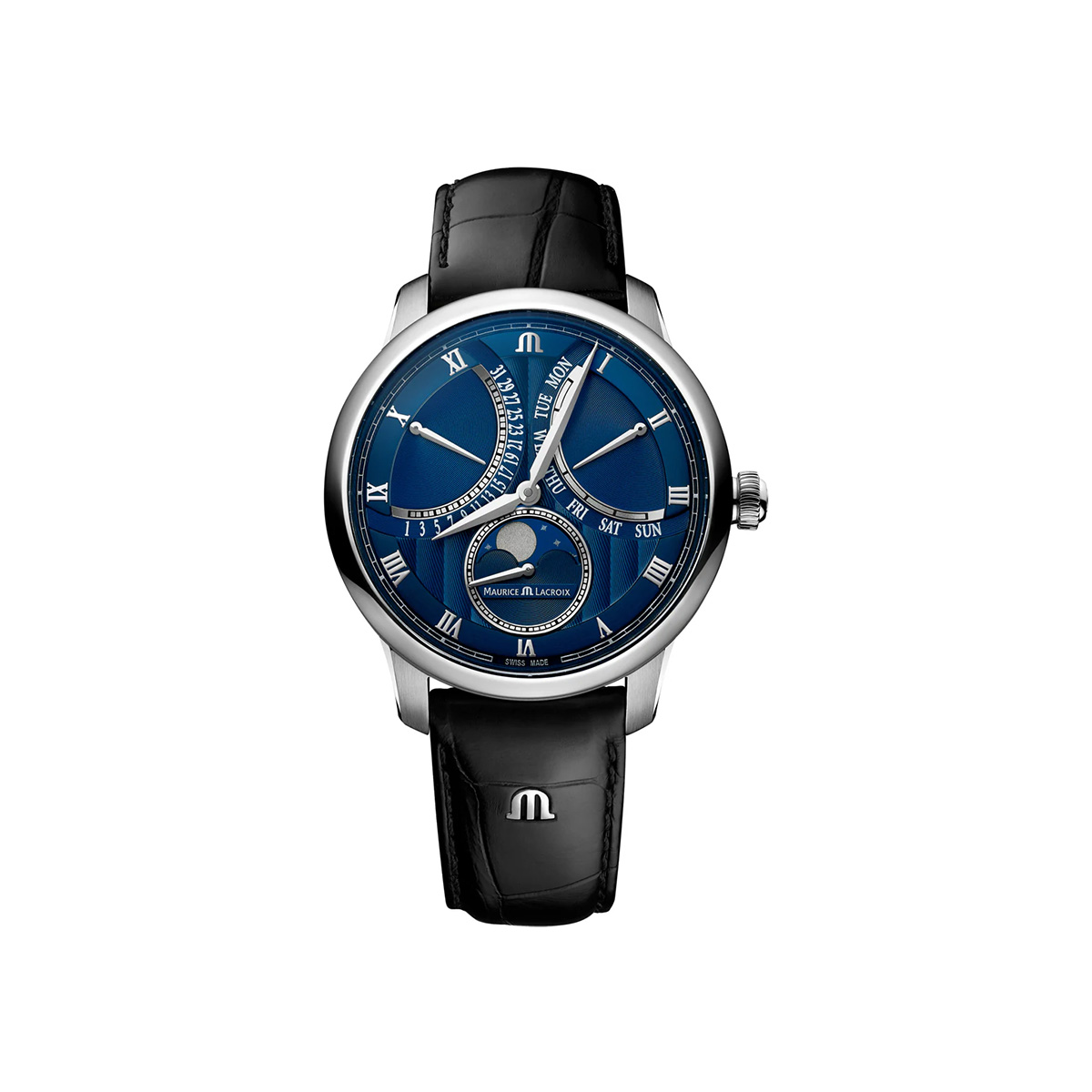 Dit Maurice Lacroix horloge heeft een kast gemaakt van Roestvrijstaal met een diameter van 43 mm en is voorzien van een leren band. In de kast bevindt zich een ML kwaliteitsuurwerk en is afgewerkt met Saffierglas.