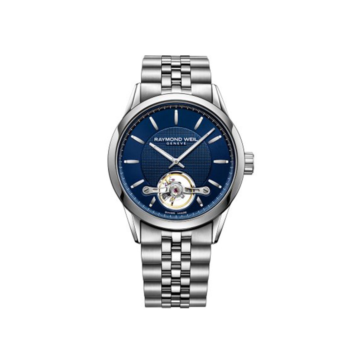 Dit freelancer kaliber RW1212 heeft een slanke 42 mm roestvrijstalen kast en een verfijnde blauwe wijzerplaat met zilveren indexen. De aandacht is gericht op de exclusieve mechanische zelfopwindende beweging in samenwerking met Sellita die met een frequentie van 28.000 trillingen per uur slaat met een gangreserve van 38 uur. Het diamantgepolijste handwiel en geraamte bruggen zorgen voor transparant zicht tot in het hart van het horloge.