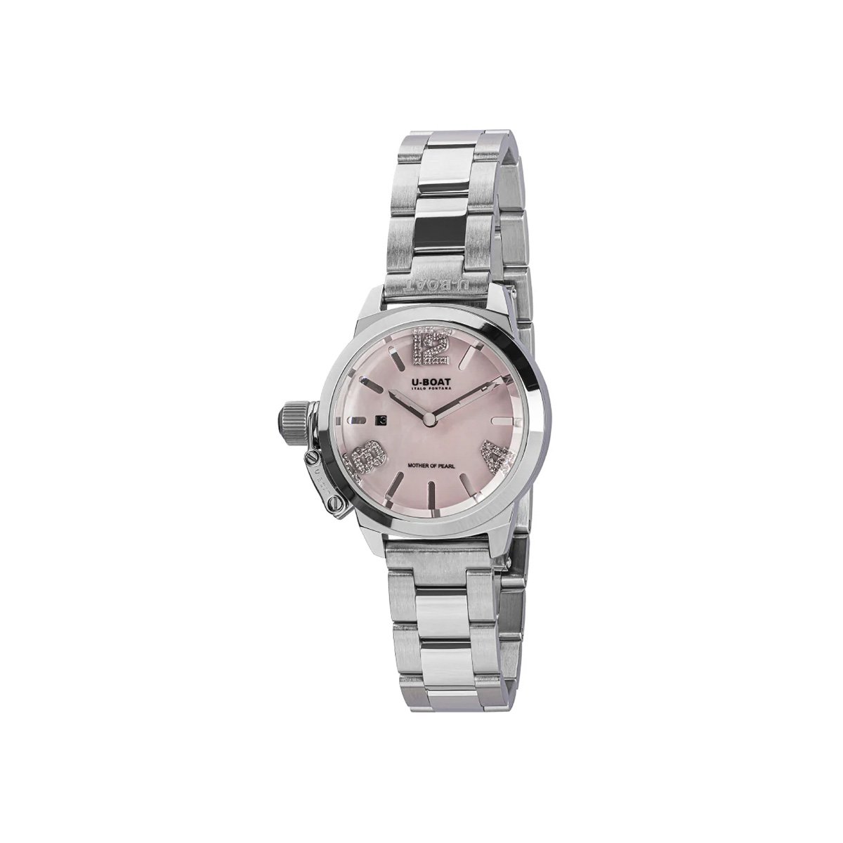 Dit elegante horloge is uitgerust met een nauwkeurig Zwitsers Ronda 774 quartz uurwerk en een 30 mm roestvrijstalen kast met saffierafwerking. De drieledige wijzerplaat van metaal en parelmoer is versierd met 36 diamanten, wat het een luxe uitstraling geeft. Met krasbestendig saffierglas, waterbestendigheid tot 50 meter en een stevige metalen band is dit horloge perfect voor dagelijks gebruik met stijl.